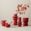 Our ceramic Lucena Vase in red featuring a satin matte coating with a soft velvet feel is the perfect vessel to style your artificial stems in any space. Select from our extensive range of artificial stems to compliment. This ceramic vase is handmade, due to the nature of handmade items there may be slight variations in the size, surface texture, coating consistency, colour or tone of the vase.