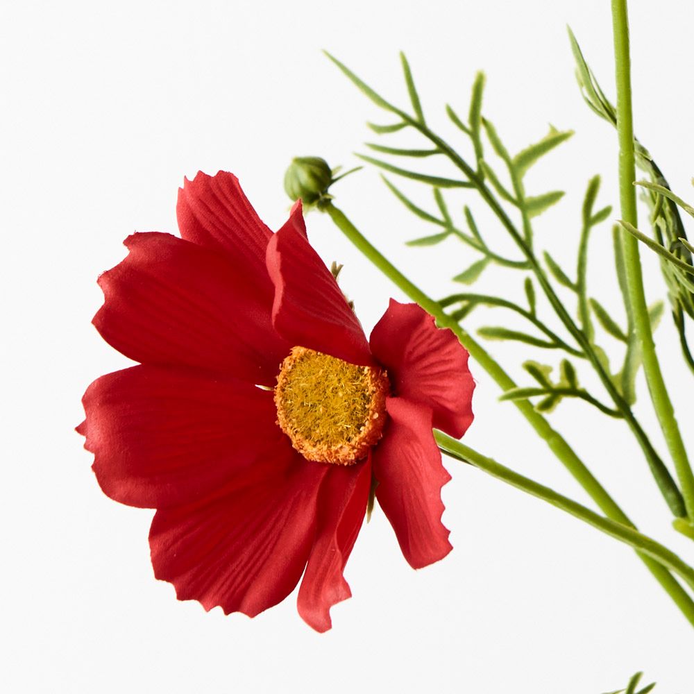 Brighten up your interior space with this spring-blooming faux Cosmos in red. Unbelievably realistic with their fresh touch you wouldn’t even think they’re faux! Style this artificial stem simply in a beautiful bunch on their own or create an arrangement from Floral Interiors huge variety of artificial flowers for impact. With minimal maintenance this faux stem can offer lasting beauty, keep out of direct sunlight. This artificial Cosmos is in our ‘Fresh Touch’ range which means the petals and leaves have a realistic soft “feel”, almost natural.
