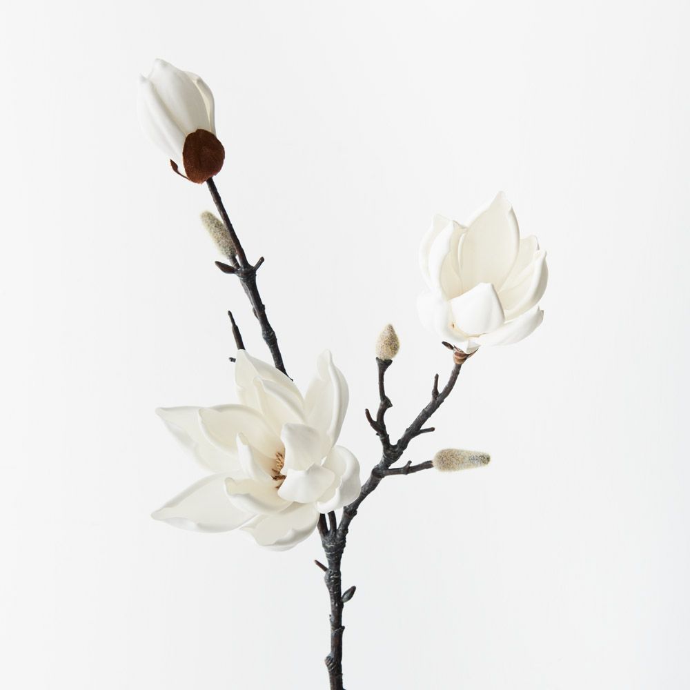Bring vibrancy to your interior space with this gorgeous faux magnolia Japanese spray. Create a one of a kind artificial arrangement mixing with other stems or place in a decorative vase on its own. Being artificial, this magnolia Japanese spray will offer lasting beauty with minimal maintenance. (keep out of direct sunlight). This artificial magnolia Japanese spray is in our ‘Fresh Touch’ range which means the petals and leaves have a realistic soft “feel”, almost natural.