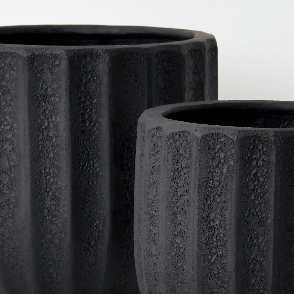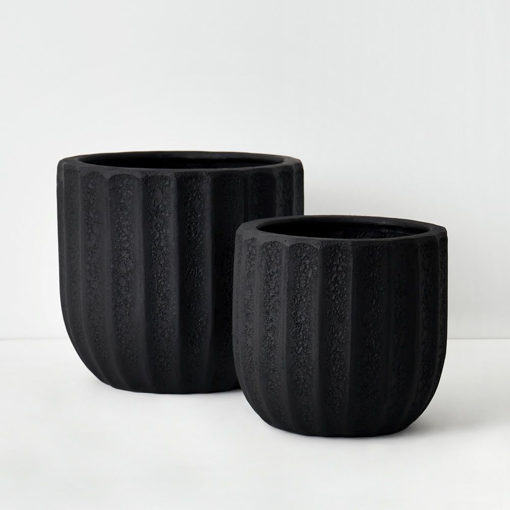 Our pot saskia (set of 2) in black are the perfect modern vessel to style your plants in any space. Due to the nature of handmade items there may be slight variations in the size, surface texture or colour. This pot is handmade from polystone, suitable for indoor or outdoor use they all come with a drainage hole.