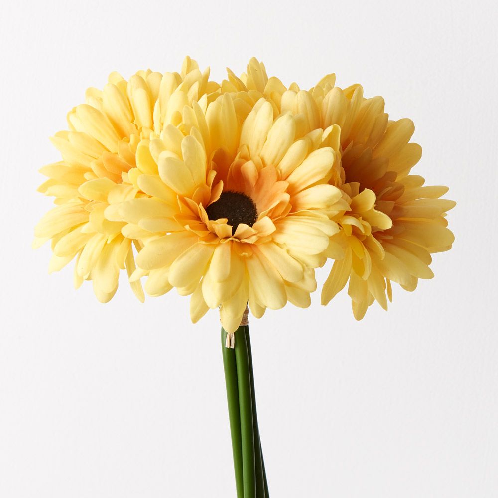 Perfect for weddings or events this gorgeous artificial gerbera bouquet offers lasting beauty. Create a one of a kind arrangement mixing with other stems or place in a decorative vase on its own. For longer lasting faux flower bouquets keep out of direct sunlight. This artificial gerbera bouquet is in our ‘Fresh Touch’ range which means the flower petals and heads have a realistic soft "feel", almost natural.