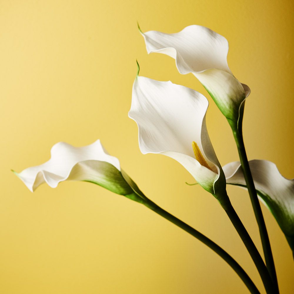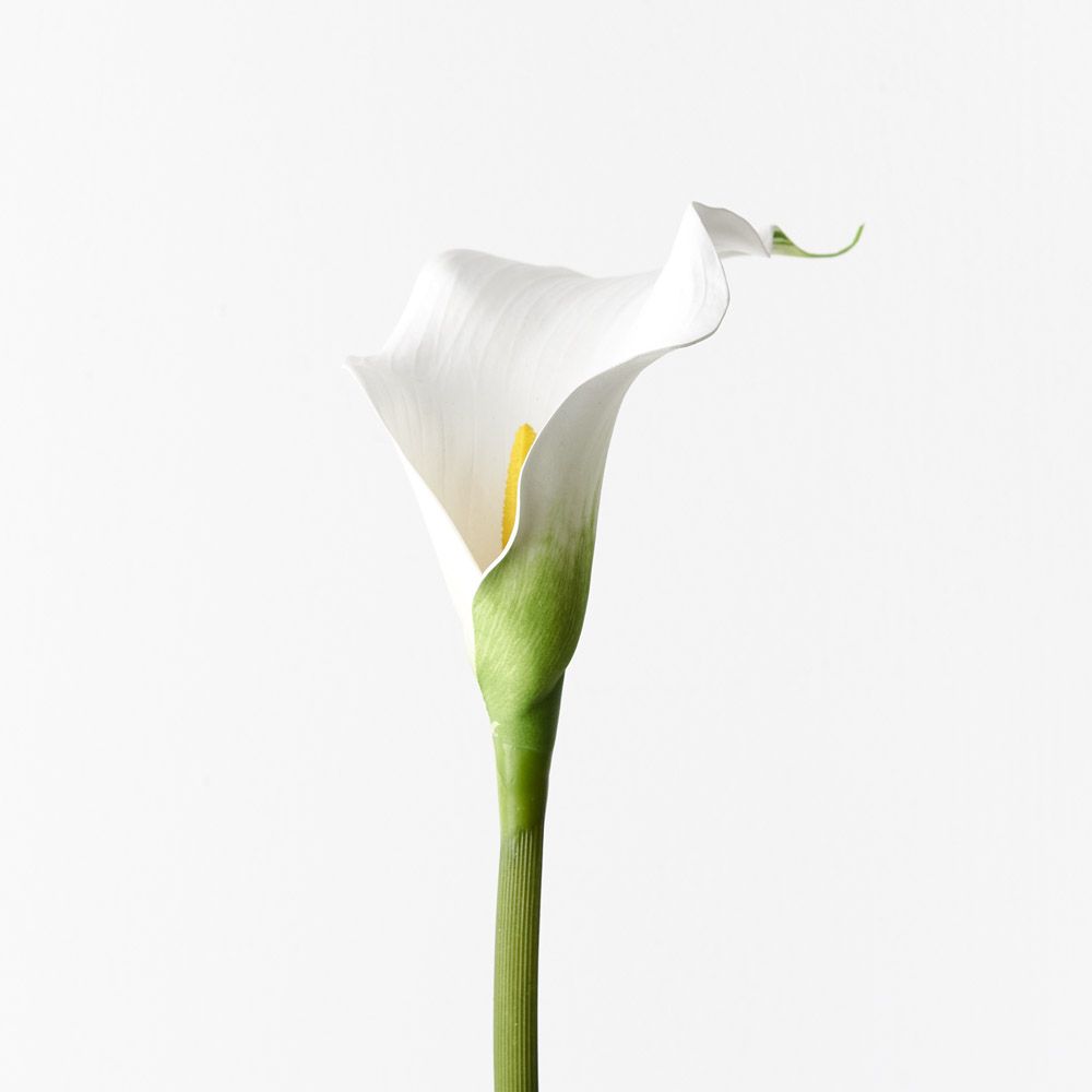 Bring a dash of colour to your interior space with this gorgeous faux calla lily in white. Easily maintained this artificial flower stem will bring lasting beauty into your home. Create a one of a kind artificial arrangement mixing with other stems or place in a decorative vase on its own. For longer lasting faux flower stems keep out of direct sunlight. This artificial calla lily is in our ‘Fresh Touch’ range which means the flower petals and heads have a realistic soft "feel", almost natural.