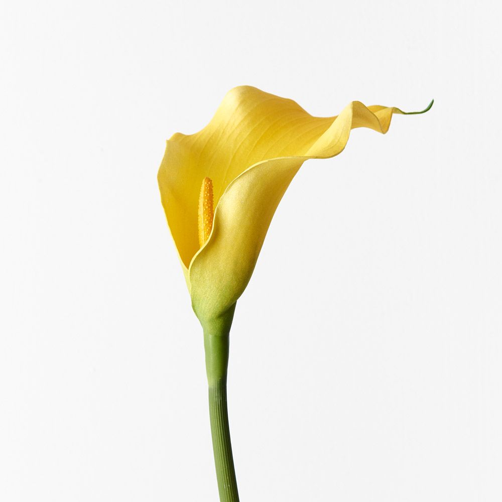 Bring a dash of colour to your interior space with this gorgeous faux calla lily in yellow. Easily maintained this artificial flower stem will bring lasting beauty into your home. Create a one of a kind artificial arrangement mixing with other stems or place in a decorative vase on its own. For longer lasting faux flower stems keep out of direct sunlight. This artificial calla lily is in our ‘Fresh Touch’ range which means the flower petals and heads have a realistic soft "feel", almost natural.