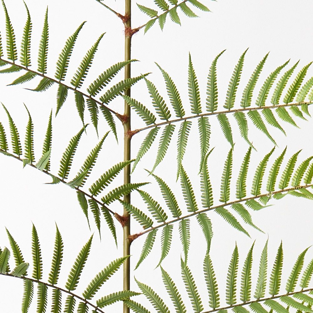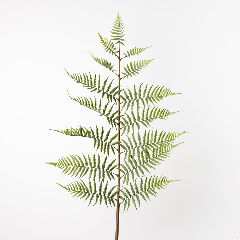 Bring the garden in and create beautiful textural arrangements with this fern frond. Easily style this fern frond mixing it with other stems and bushes from our artificial flower collection. This faux fern frond will bring lasting beauty. Be sure to keep out of direct sunlight.