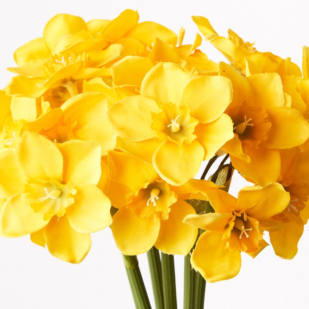 Perfect for events or weddings and easily maintained this gorgeous faux narcissus bouquet in yellow will bring lasting beauty. Style this artificial bouquet in a beautiful bunch on their own or create an arrangement from Floral Interiors huge variety of artificial flowers for impact. Made from the finest of materials this bouquet looks amazingly real. Being artificial, this flower bouquet will offer lasting beauty with minimal maintenance, keep out of direct sunlight.