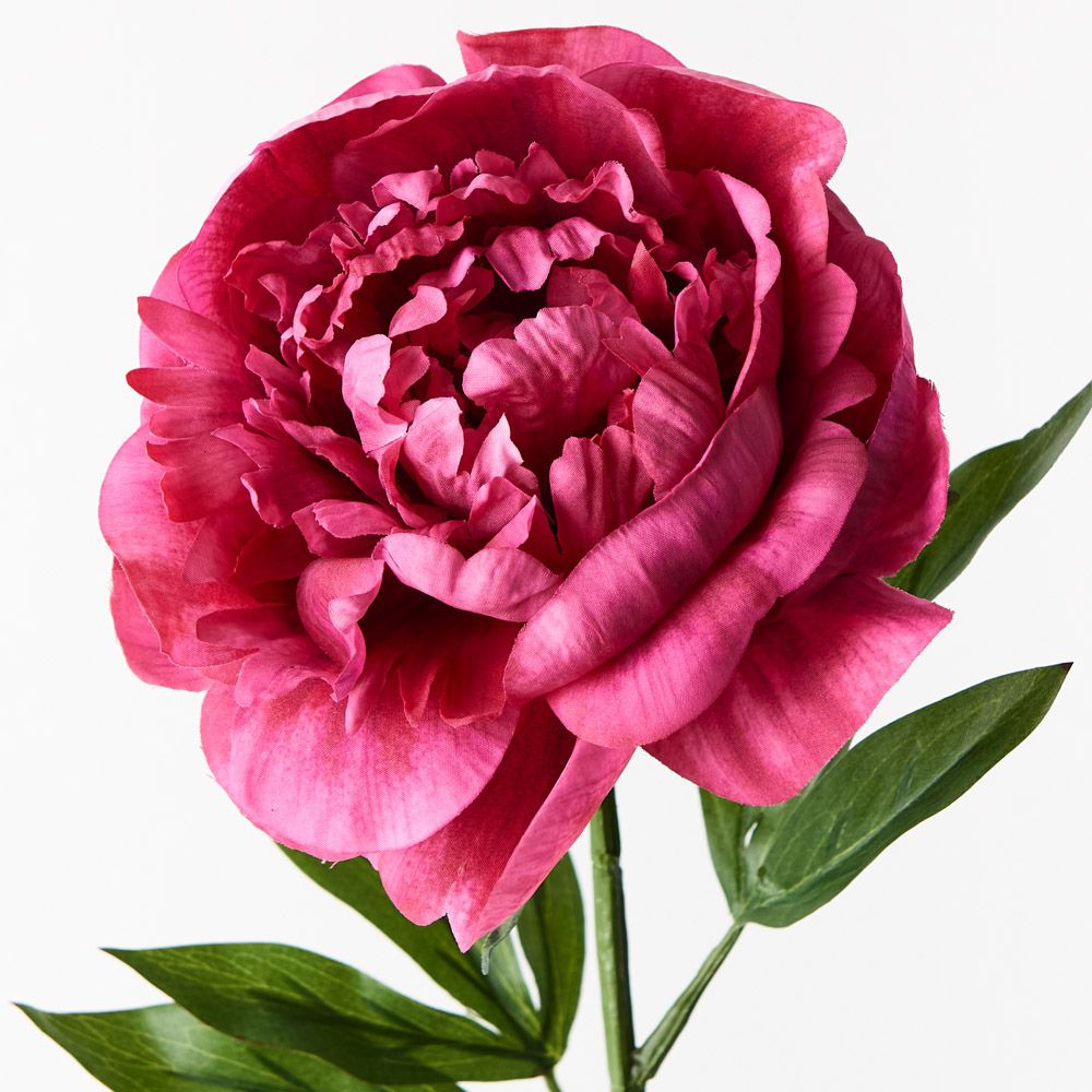 Bring a dash of colour to your interior space with this gorgeous faux peony stem. Easily maintained this beautiful artificial flower stem will bring lasting beauty into your home. Create a one of a kind artificial arrangement mixing this peony in fuschia with other stems or place in a decorative vase on its own. For longer lasting faux flower stems keep out of direct sunlight.