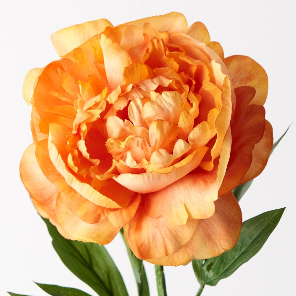 Bring a dash of colour to your interior space with this gorgeous faux peony stem. Easily maintained this beautiful artificial flower stem will bring lasting beauty into your home. Create a one of a kind artificial arrangement mixing this peony in orange with other stems or place in a decorative vase on its own. For longer lasting faux flower stems keep out of direct sunlight.