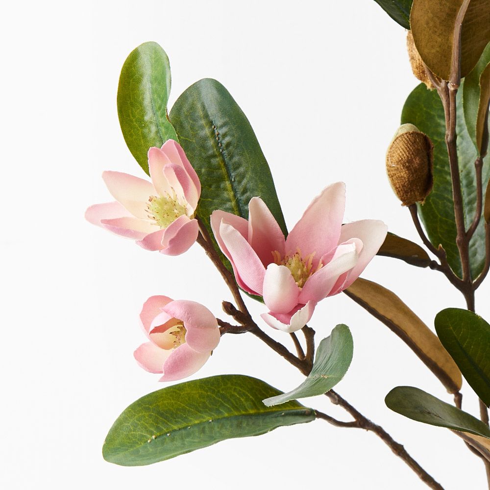 Bring warmth and vibrancy to your interior space with this gorgeous faux magnolia pearl spray in pink. Create a one of a kind artificial arrangement mixing with other stems or place in a decorative vase on its own. Being artificial, this magnolia pearl spray will offer lasting beauty with minimal maintenance, keep out of direct sunlight.
