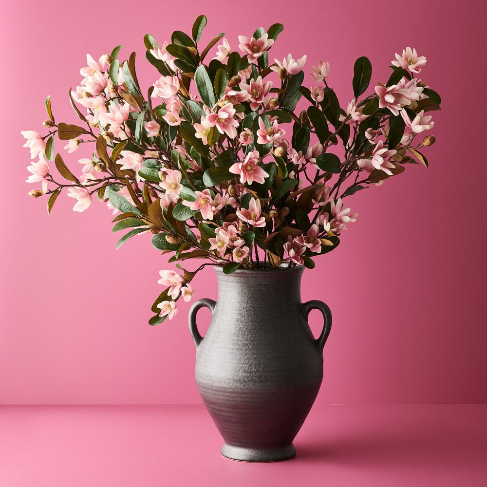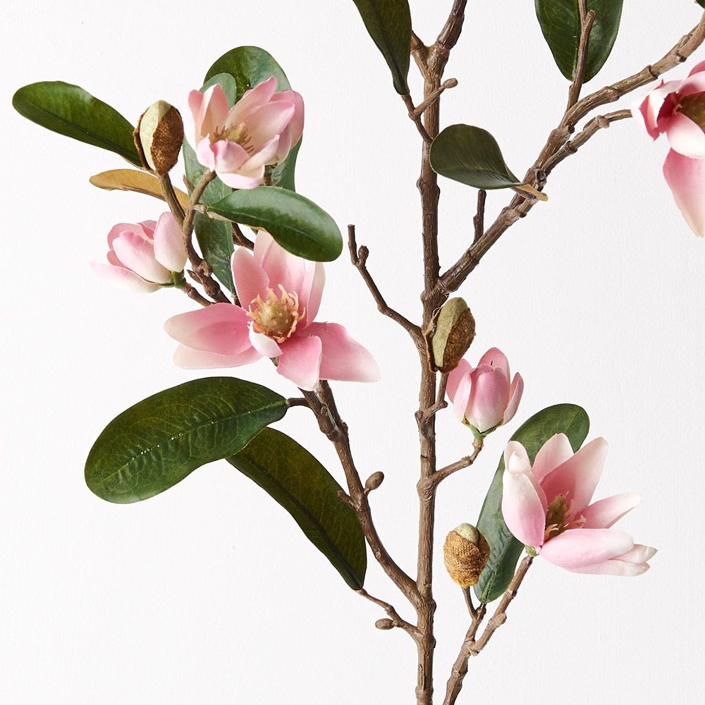 Bring warmth and vibrancy to your interior space with this gorgeous faux magnolia pearl spray in pink. Create a one of a kind artificial arrangement mixing with other stems or place in a decorative vase on its own. Being artificial, this magnolia pearl spray will offer lasting beauty with minimal maintenance, keep out of direct sunlight.