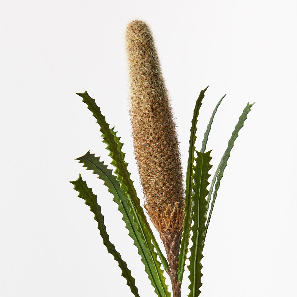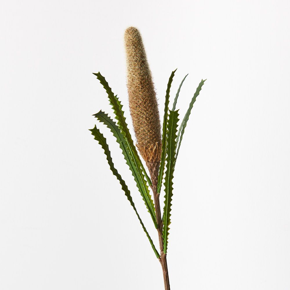 Finely detailed this artificial banksia pencil cone is amazingly realistic. With minimal maintenance this faux stem can offer enduring beauty and bring warmth and vibrancy to your home or interior space. Style this banksia pencil cone simply in a beautiful bunch on their own or create an arrangement from Floral Interiors huge variety of artificial flowers for impact.