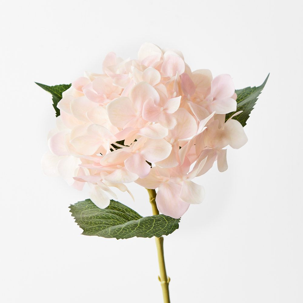Bring warmth and vibrancy to your interior space with this gorgeous faux hydrangea in soft pink. Create a one of a kind artificial arrangement mixing with other stems or place in a decorative vase on its own. Being artificial, this flower stem will offer lasting beauty with minimal maintenance, keep out of direct sunlight. This artificial hydrangea is in our ‘Fresh Touch’ range which means the flower petals and heads have a realistic soft "feel", almost natural.