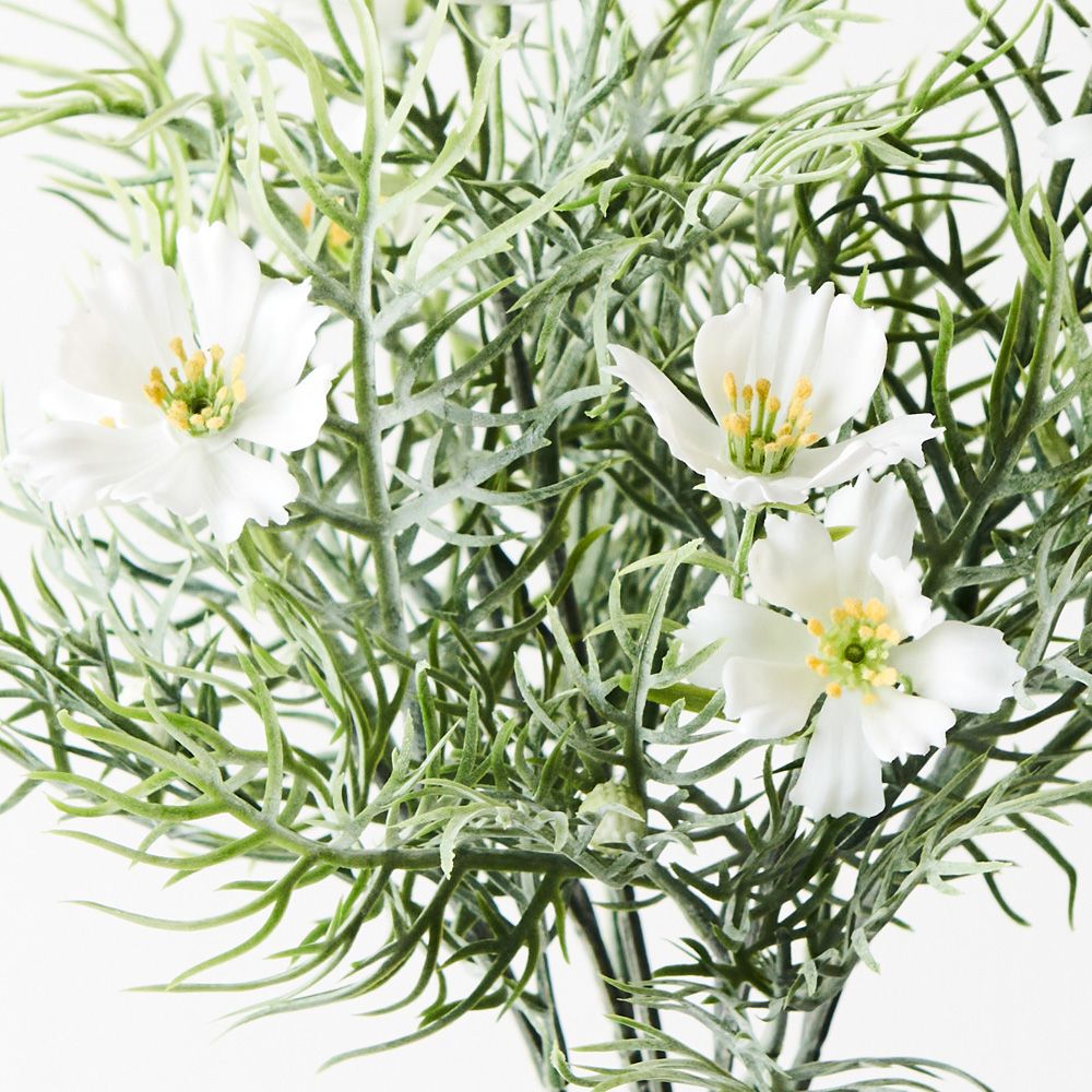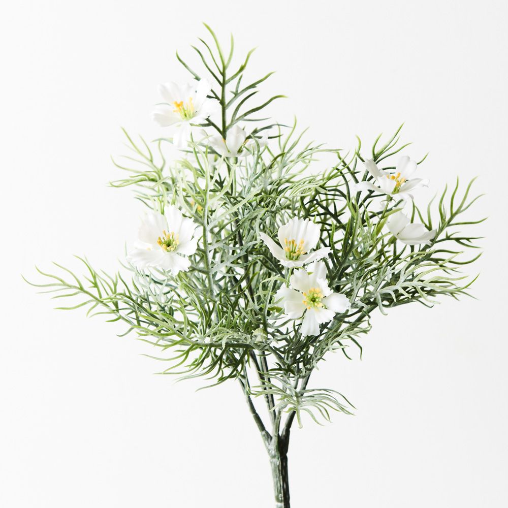 Brighten up your interior space with this spring-blooming faux Cosmos Bush in white. Unbelievably realistic with their fresh touch you wouldn’t even think they’re faux! Style this artificial stem simply in a beautiful bunch on their own or create an arrangement from Floral Interiors huge variety of artificial flowers for impact. With minimal maintenance this faux bush can offer lasting beauty, keep out of direct sunlight.