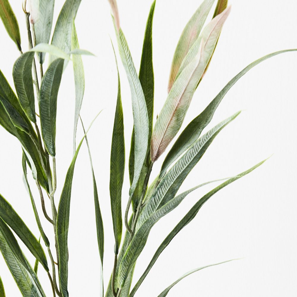 Offering enduring beauty with minimal maintenance this eucalyptus long leaf spray will breathe new life-like beauty into your home. This gorgeous faux eucalyptus spray looks amazingly real . Create a one of a kind artificial arrangement mixing with other stems or place in a decorative vase on its own for an instant lift. For longer lasting fake flower stems keep out of direct sunlight.
