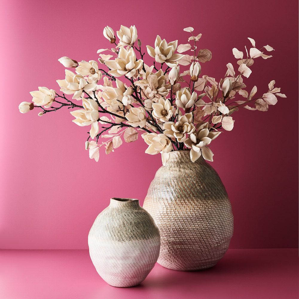 This ceramic pot emira featuring a shiny textured glaze feel is the perfect vessel to style your stems or branches in any space. Select from our extensive range of artificial items to compliment. This ceramic pot is handmade, due to the nature of handmade items there may be slight variations in the size, surface texture, coating consistency, colour or tone of the vase.