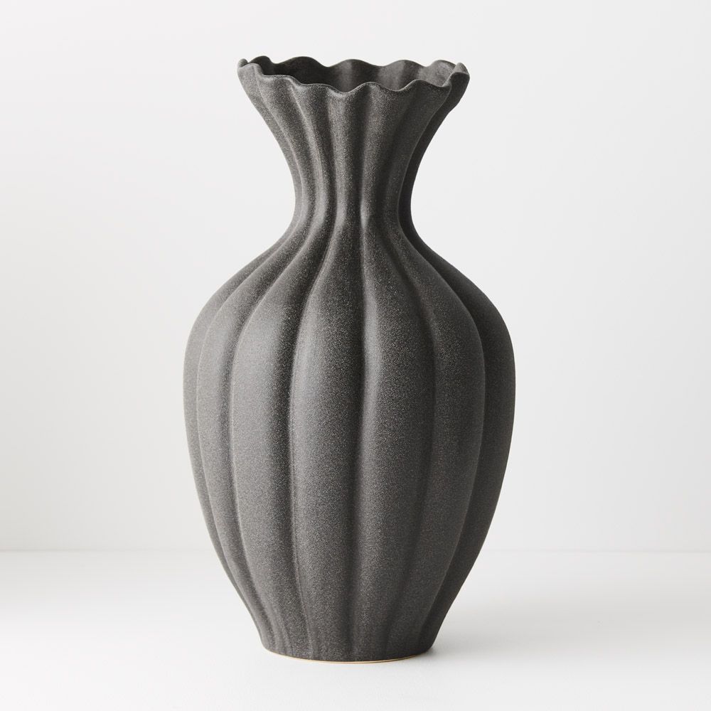 Our Basma vase in Black has a white speckIe through it's smooth surface, salt and pepper like. It’s not only eye-catching on its own, but pairs perfectly with our extensive range of artificial stems to create an eccentric appearance in any home or office. This ceramic vase is handmade, due to the nature of handmade items there may be slight variations in the size, surface texture, glaze consistency, colour or tone of the vases. Note: These decorative vases do not come with a guarantee they will hold water.