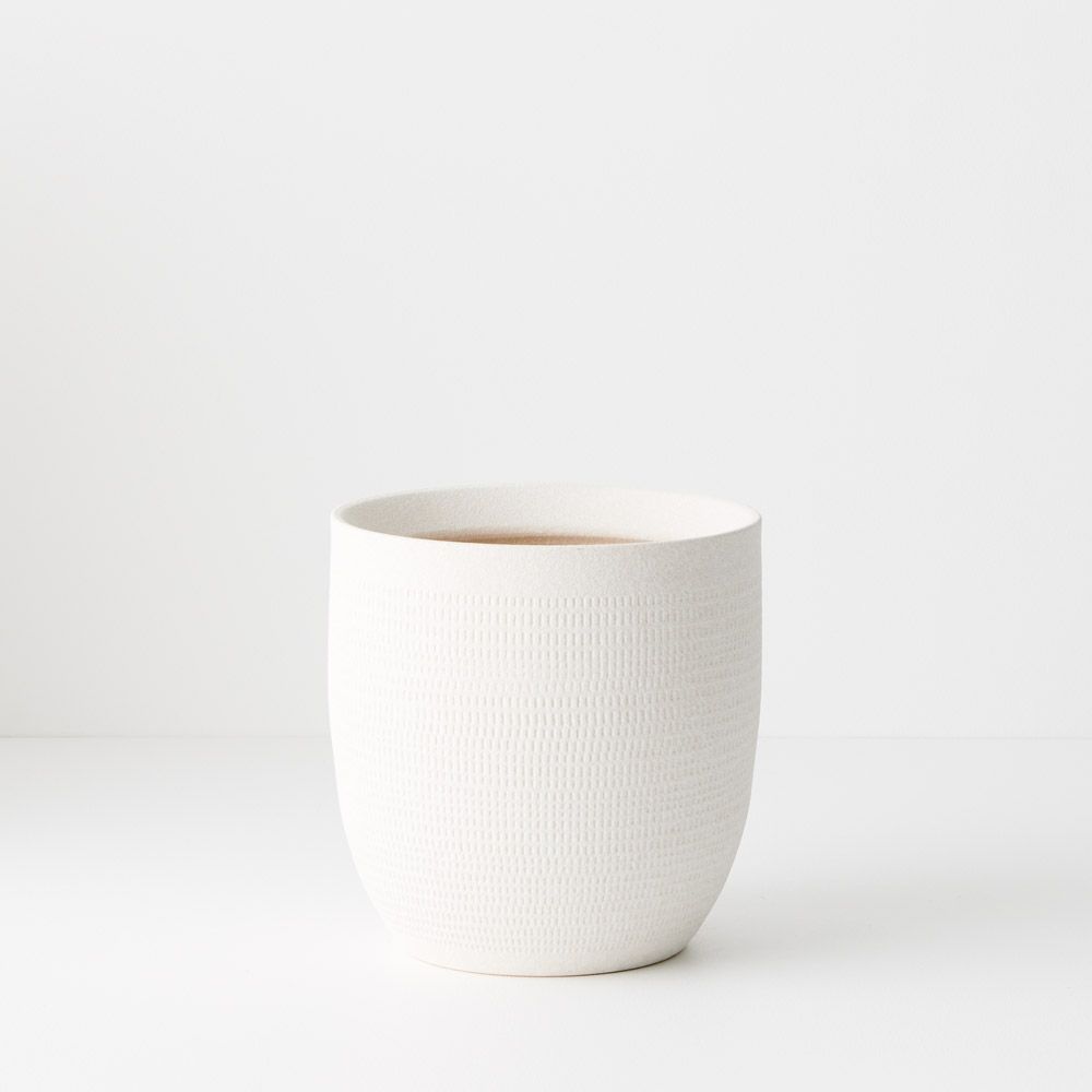This ceramic pot Sundra in winter white is handmade, due to the nature of handmade items there may be slight variations in the size, surface texture, glaze consistency, colour or tone of the pots. This pot is suitable for indoor use and does not have a drainage hole.