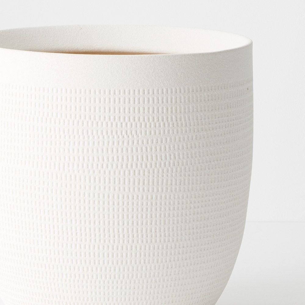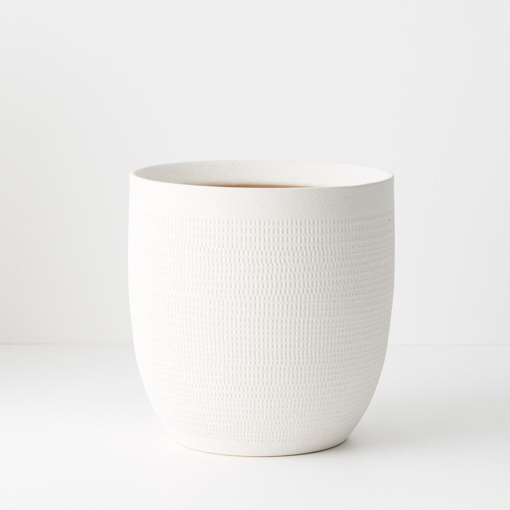 This ceramic pot Sundra in winter white is handmade, due to the nature of handmade items there may be slight variations in the size, surface texture, glaze consistency, colour or tone of the pots. This pot is suitable for indoor use and does not have a drainage hole.
