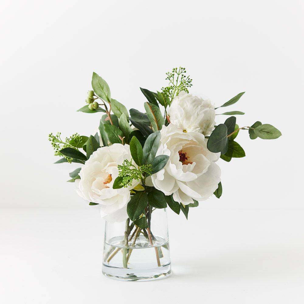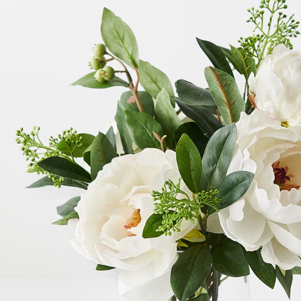 This artificial arrangement peony mix in vase is handcrafted using premium quality materials set in clear resin (artificial water), makes Interior Styling effortless.