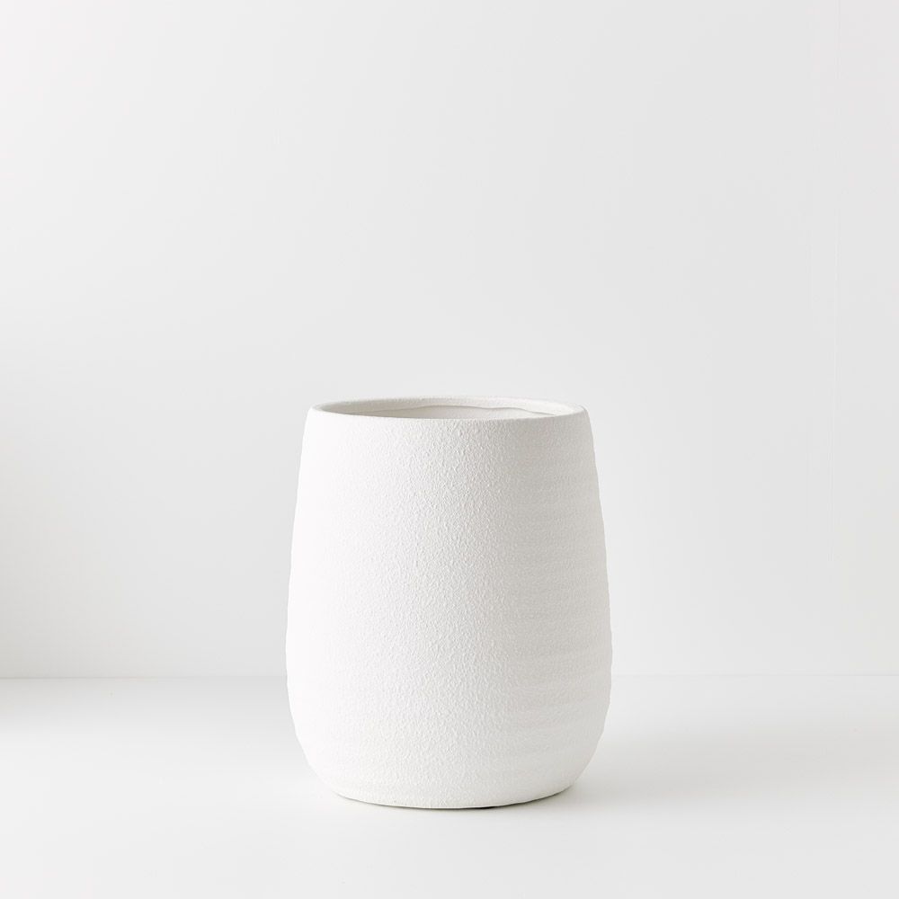 Introducing the Pazi Pot in white. With a subtle gritty texture that adds a distinctive touch to your home or office decor and a large opening the Pazi pot is perfect for plants, floral arrangements and or greenery. These handcrafted pots are designed to make an impact, offering a unique and stylish way to elevate your interior space. Note: These decorative vases do not come with a guarantee they will hold water.