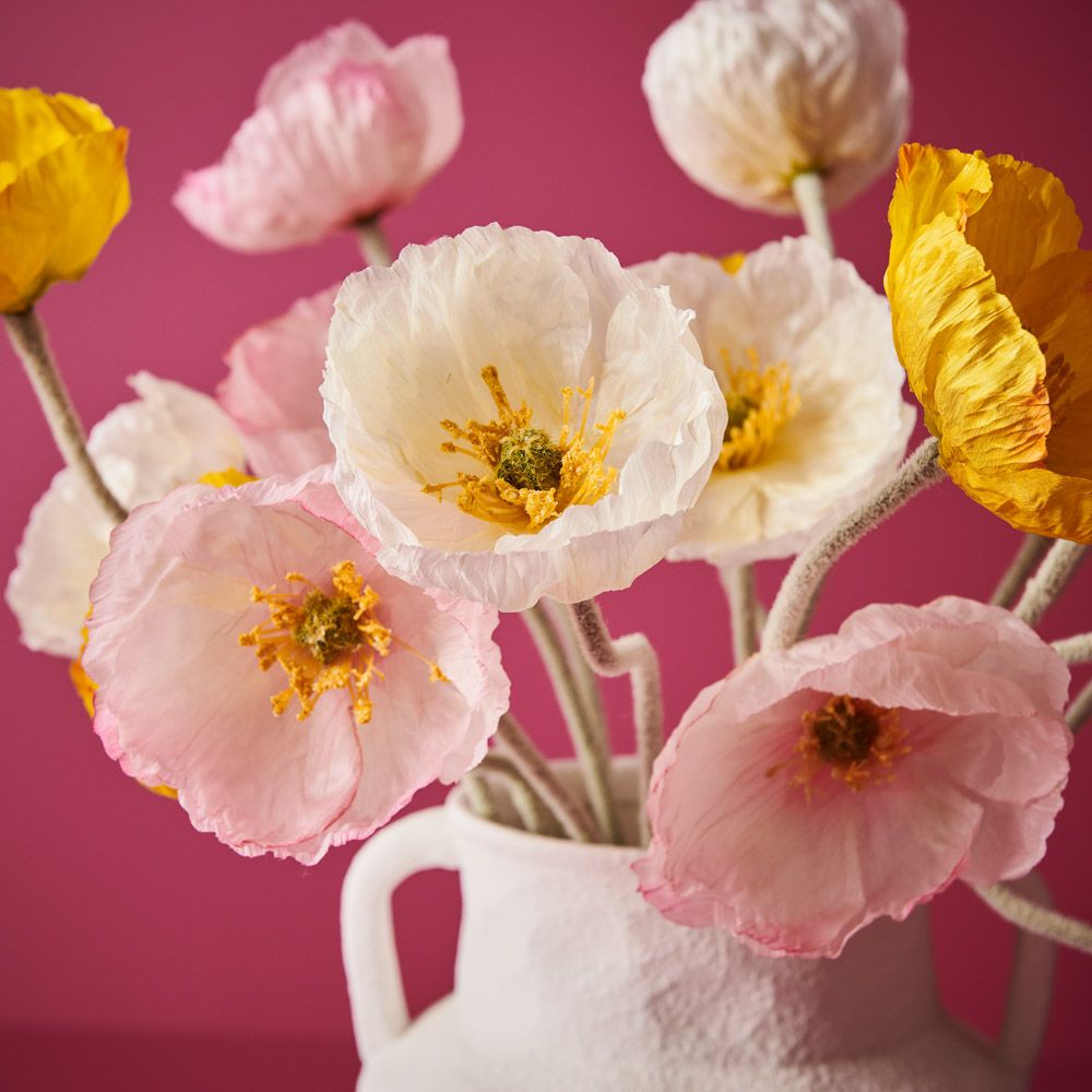 Bring a dash of colour to your interior space with this gorgeous faux poppy iceland in light pink. Easily maintained this beautiful artificial flower stem will bring lasting beauty into your home or interior space. Create a one of a kind artificial arrangement mixing this poppy with other stems or place in a decorative vase on its own. For longer lasting faux flower stems keep out of direct sunlight.