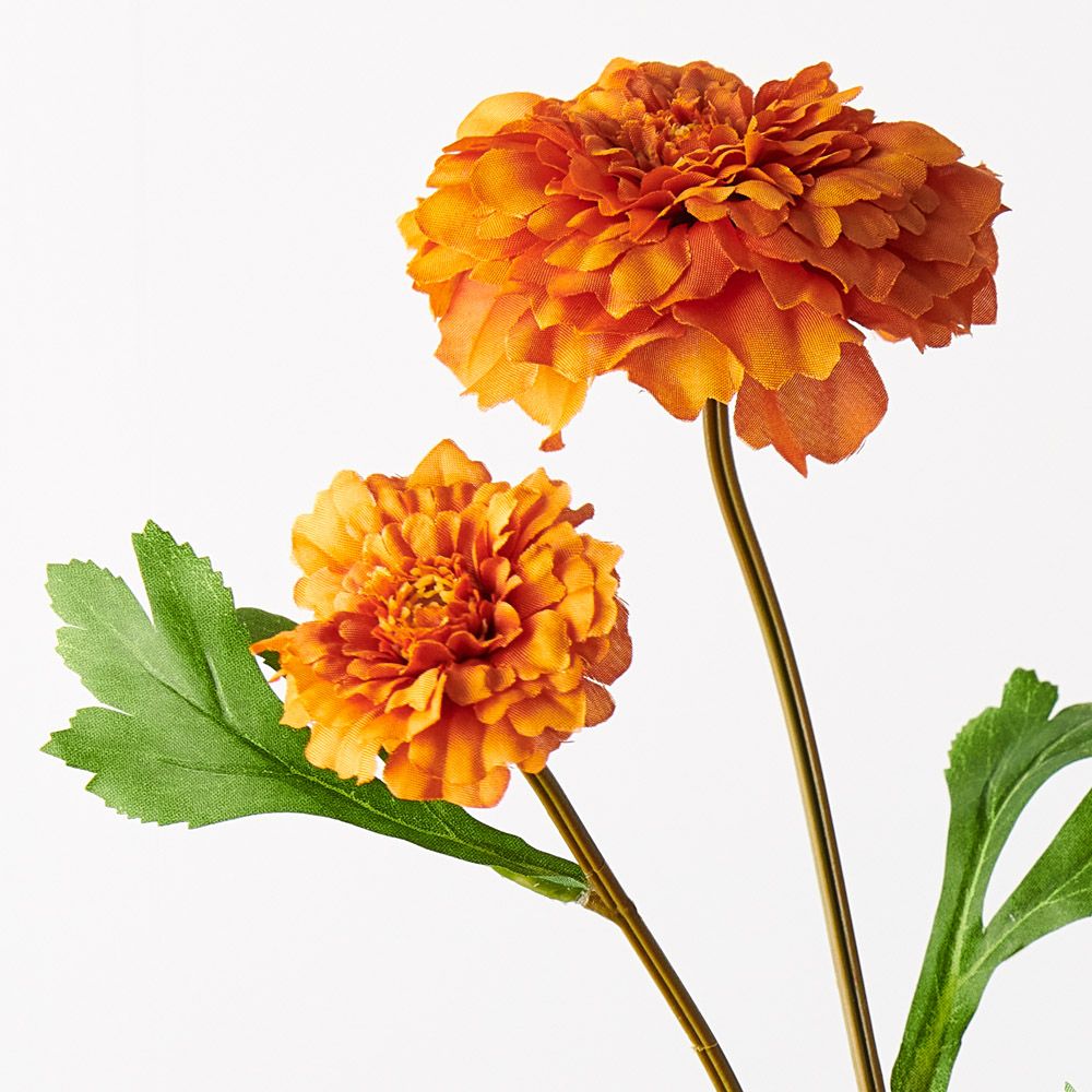 Bring the garden indoors with this striking artificial marigold spray in burnt orange, unbelievably realistic it will feel like you have just been to the market and picked a fresh bunch. Style this marigold spray effortlessly in a beautiful bunch on their own or create an arrangement from Floral Interiors huge variety of artificial flowers for impact. Being artificial, this marigold spray is easy to care for and simple to style in your interior space. Keep out of direct sunlight for long lasting beauty.