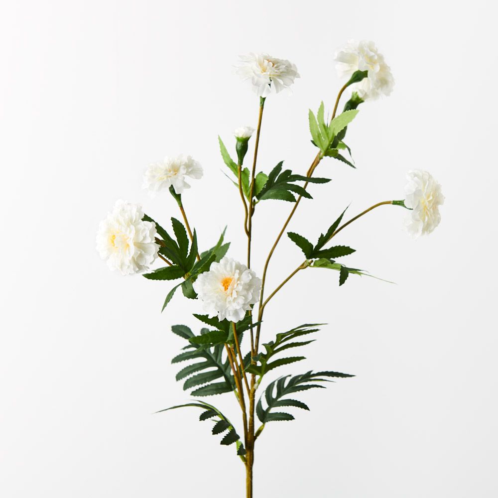 Bring the garden indoors with this striking artificial marigold spray in white, unbelievably realistic it will feel like you have just been to the market and picked a fresh bunch. Style this marigold spray effortlessly in a beautiful bunch on their own or create an arrangement from Floral Interiors huge variety of artificial flowers for impact. Being artificial, this marigold spray is easy to care for and simple to style in your interior space. Keep out of direct sunlight for long lasting beauty.