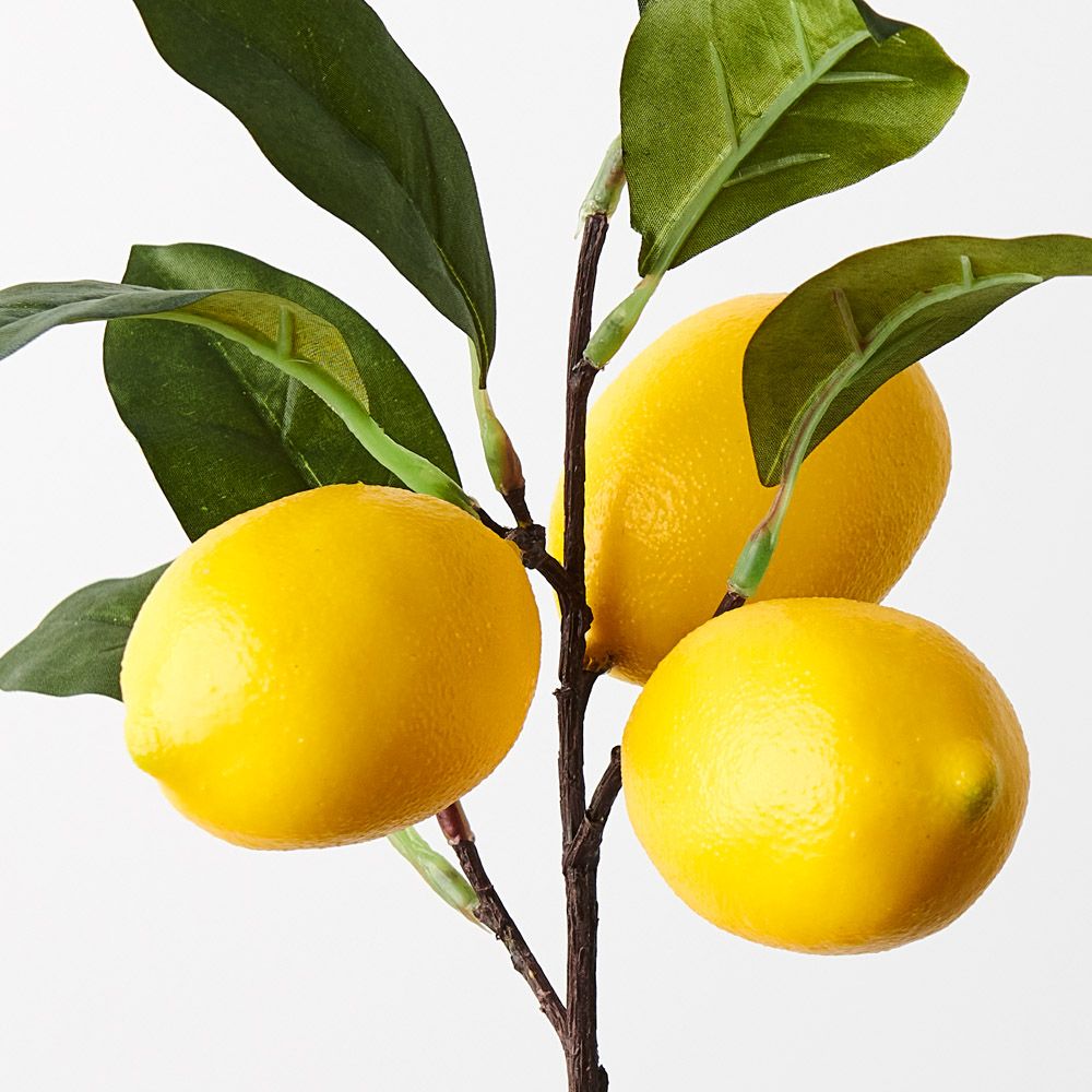 Offering enduring beauty with minimal maintenance this fruit lemon spray will breathe new life-like beauty into your home. This faux fruit lemon spray looks amazingly real. Create a one of a kind artificial arrangement mixing with other stems or place in a decorative vase on its own for an instant lift. For longer lasting sprays keep out of direct sunlight.
