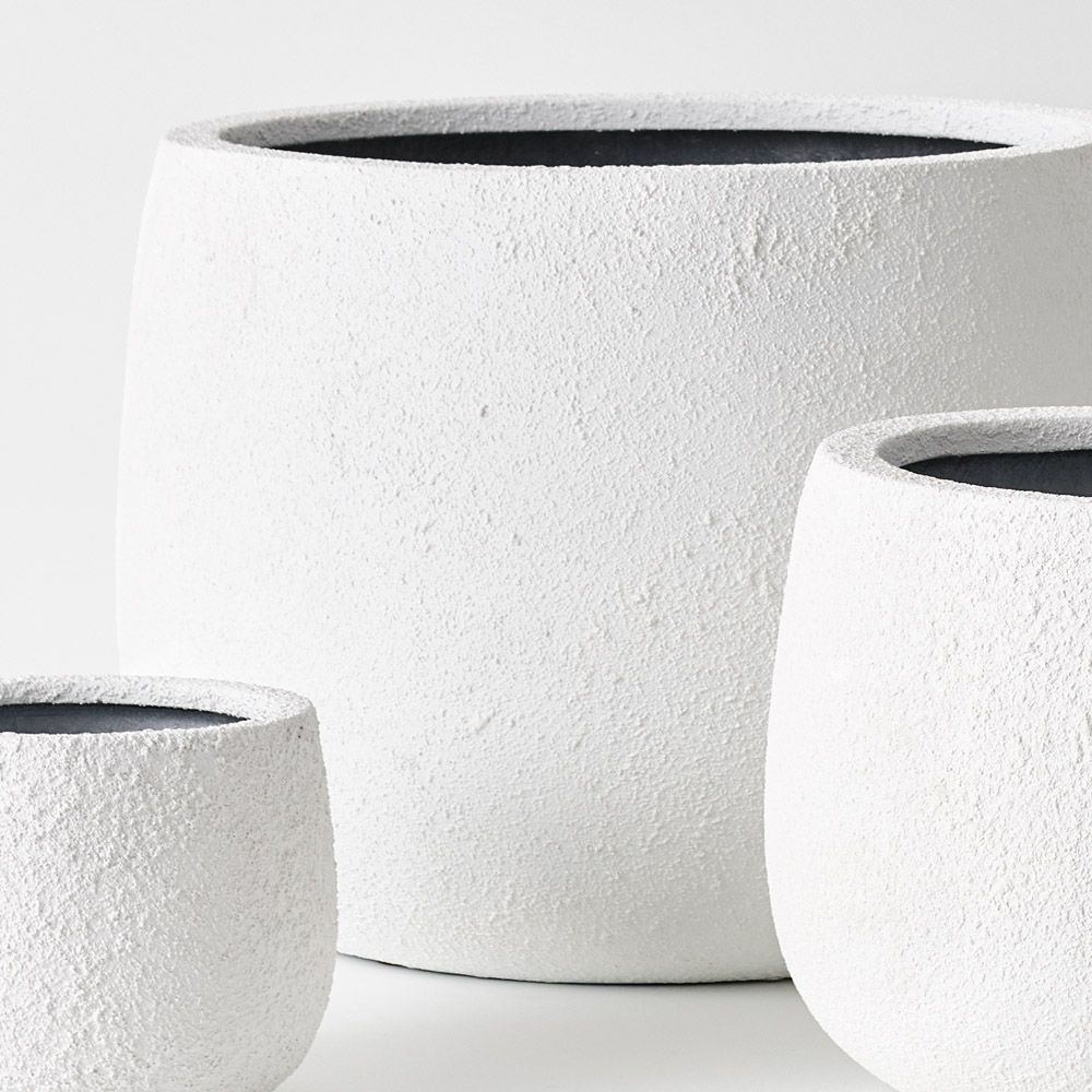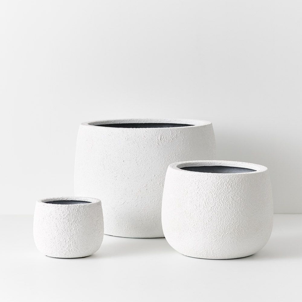 Our pot rok tora (set of 3) in white are the perfect modern vessel to style your plants in any space. These pots are handmade from polystone, due to the nature of handmade items there may be slight variations in the size, surface texture or colour. Suitable for indoor or outdoor use they all come with a drainage hole.