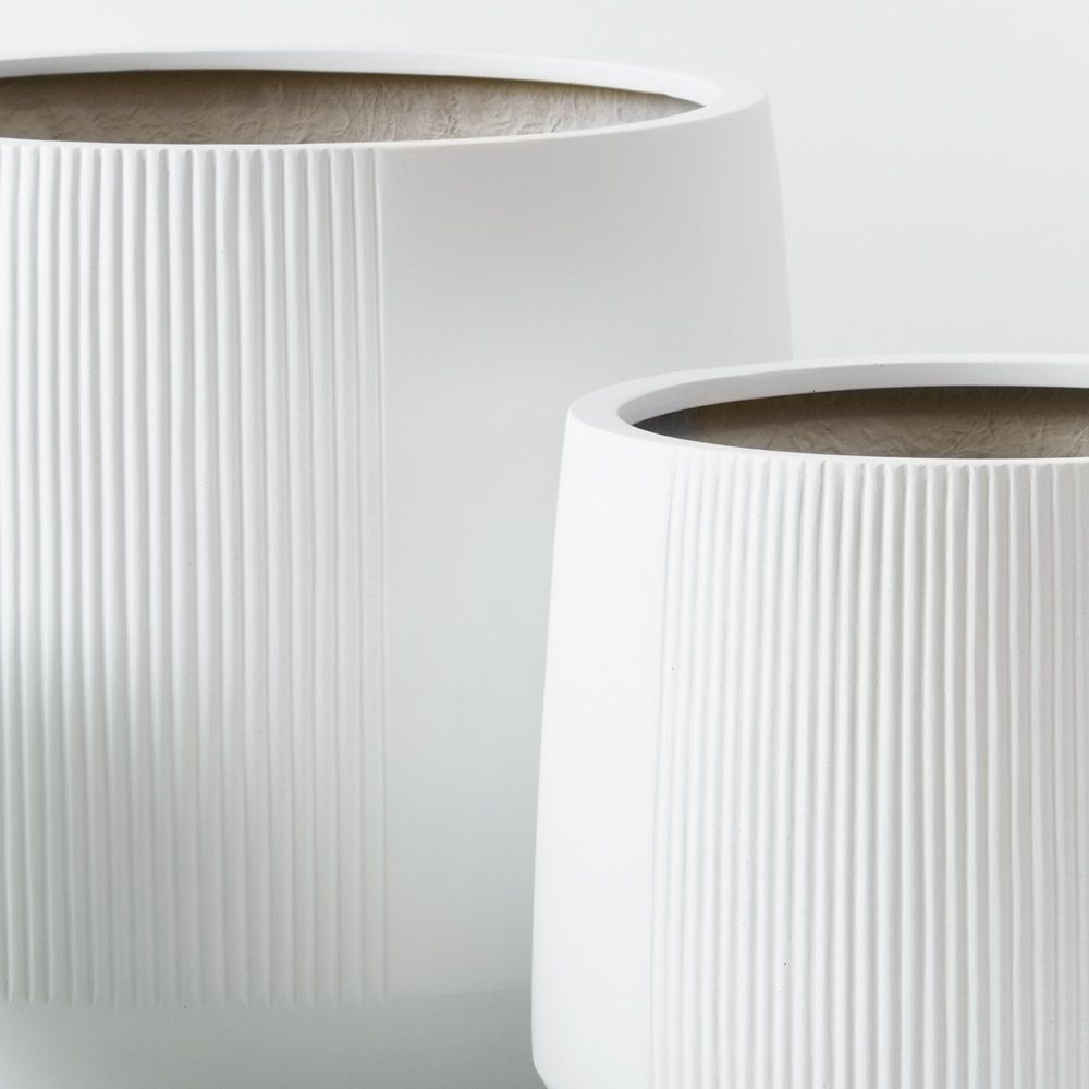 Discover the Versatile Trio: Dune Kalo Pot Set. With tapered bases and ample sizes, these pots effortlessly accommodate indoor and outdoor plants of various dimensions. Their seamless blend of form and function makes them essential for botanical enthusiasts. These pots have drainage holes and are a lightweight polystone.