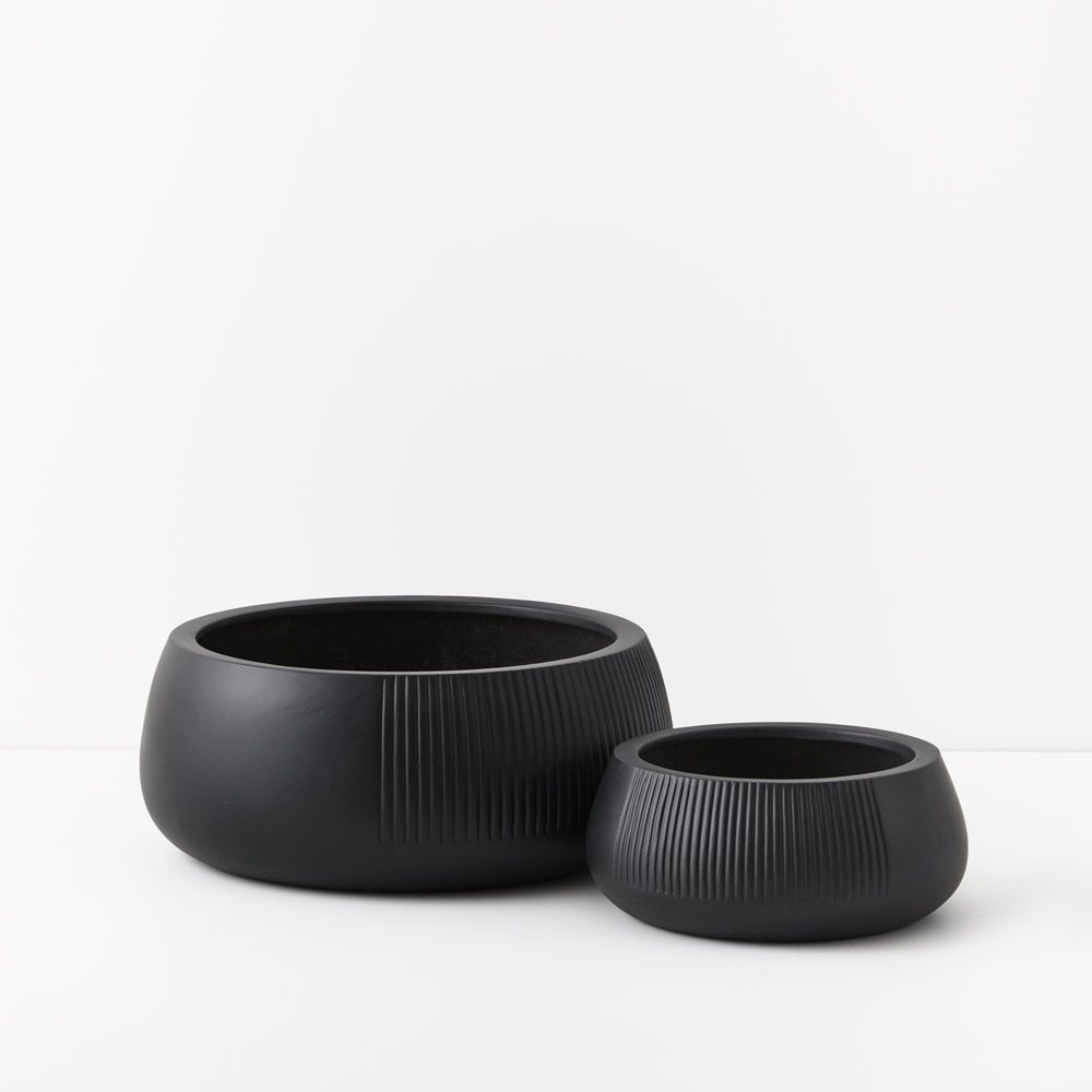 Meet Dune Nejalo: A duo of low bowl like pots, ideal for succulents, hanging plants and greenery. These pots are perfect for smaller plants, whether indoors or outdoors. Elevate your space with their sleek design and versatility. These pots have drainage holes and are a lightweight polystone.