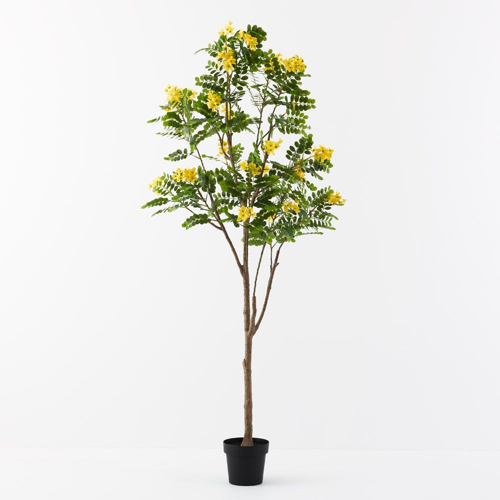 The artificial Cassia Glauca Tree mimics the graceful silhouette and delicate foliage of its natural counterpart. Crafted with meticulous detail, it brings the charm of nature into any space, offering timeless elegance without the need for maintenance. This tree stands at 210cm.