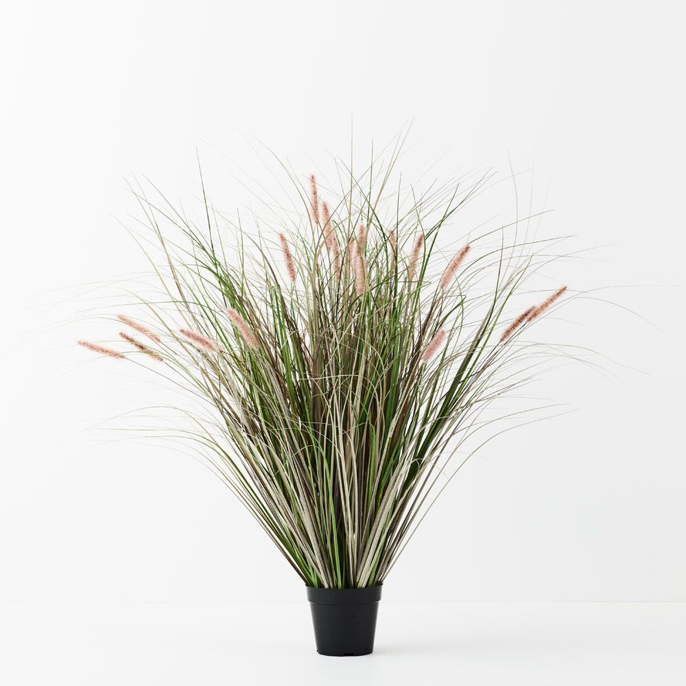 The Fox Tail Grass plant is elegantly presented in a black plastic pot, accentuating its natural beauty with a touch of modern simplicity. This combination of rustic charm and contemporary design makes it a versatile and easy-to-care-for addition to any indoor space.