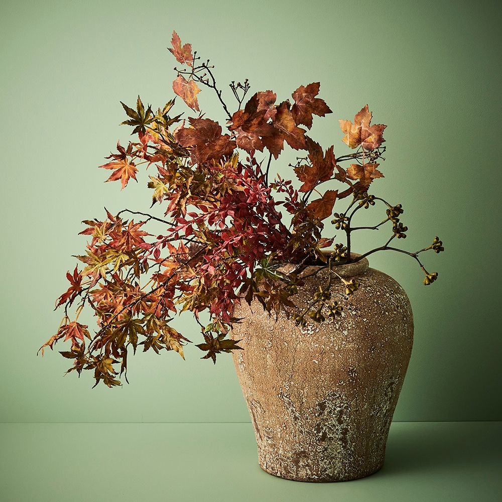 Unveiling the Japanese Maple Leaf Spray, a captivating blend of elegance and nature. This artificial spray showcases meticulously crafted Japanese maple leaves in exquisite shades of crimson, orange, and gold. Infuse your space with the grace and sophistication of Japanese aesthetics, bringing a touch of tranquillity and artistry to your surroundings without the seasonal constraints.