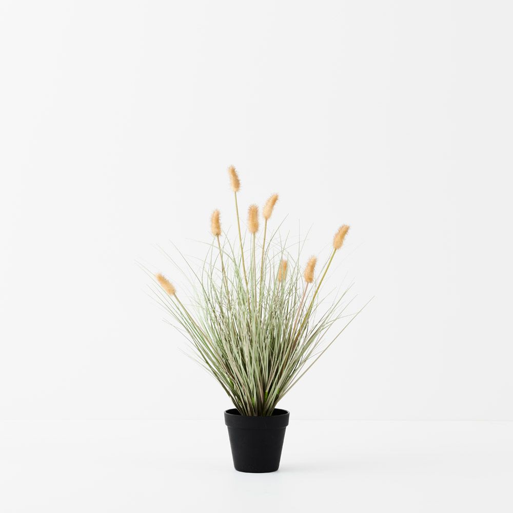 The Bunny Tail Grass plant, a whimsical delight, features fluffy, soft seed heads resembling tiny bunny tails atop slender stems. With its charming appearance and low maintenance, it adds a touch of playful elegance to any space, perfect for both indoor and outdoor settings.