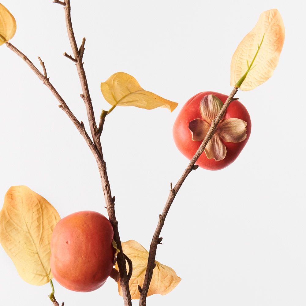 Introducing the 100cm long Persimmon Spray, an exquisite botanical marvel that stands tall at a full meter, commanding attention and infusing a touch of autumnal warmth into your decor. Each branch features lifelike persimmon fruits, their rich orange hues capturing the essence of fall. The 100cm height adds a striking vertical element, making this spray a standout centrepiece or a bold addition to seasonal arrangements. Embrace the beauty of autumn with the grandeur of the 100cm Persimmon Spray, effortlessly bringing the spirit of the season into your space.