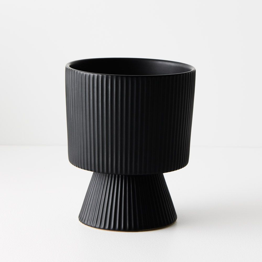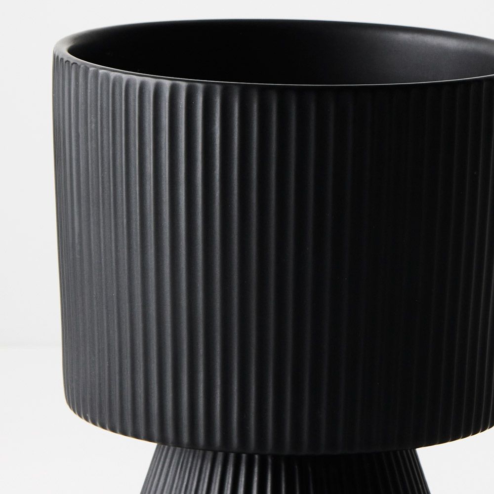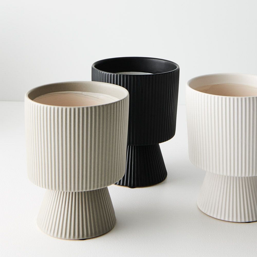 The Lipa footed pot, featuring vertical linear details, emerges as the quintessential small plant pot. Its charming design blends functionality with style.