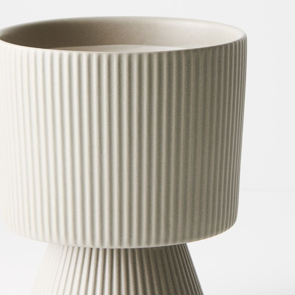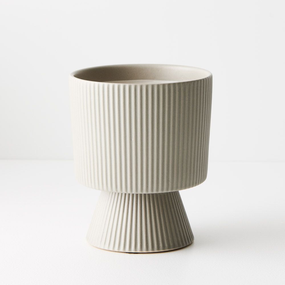 The Lipa footed pot, featuring vertical linear details, emerges as the quintessential small plant pot. Its charming design blends functionality with style.