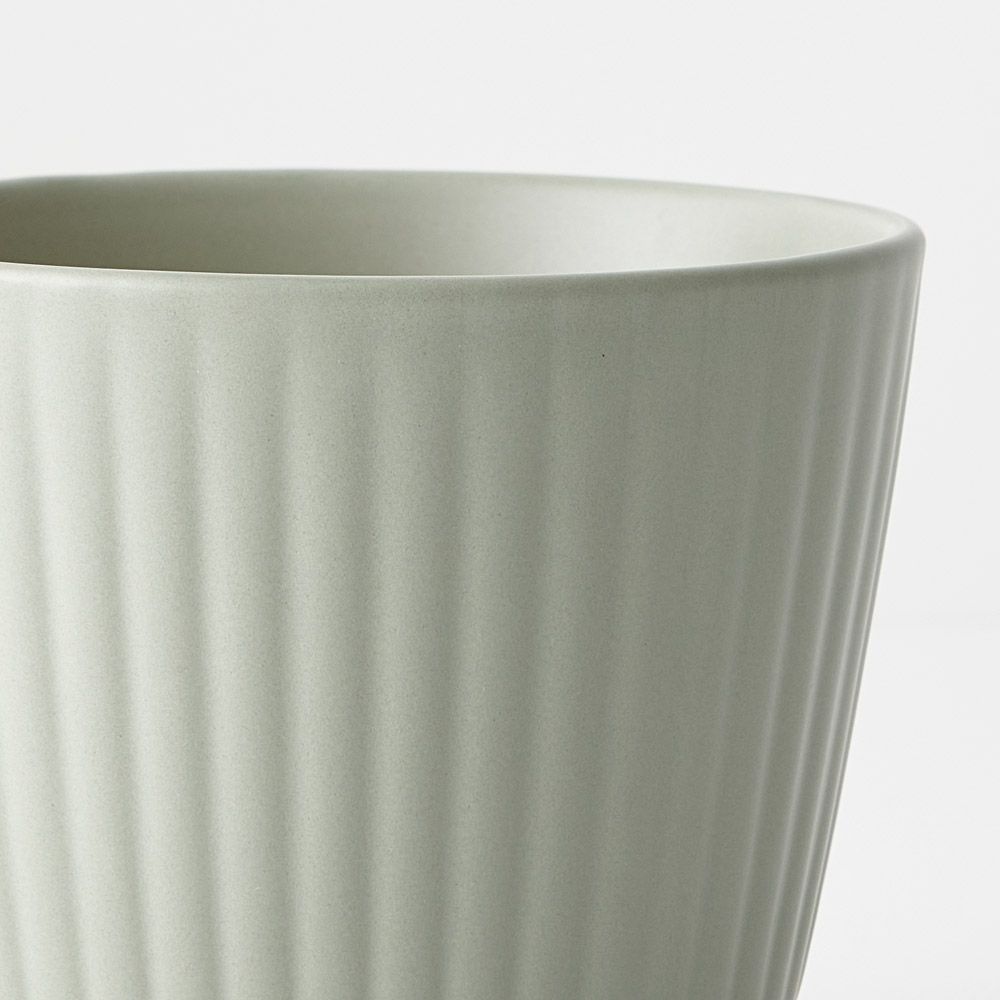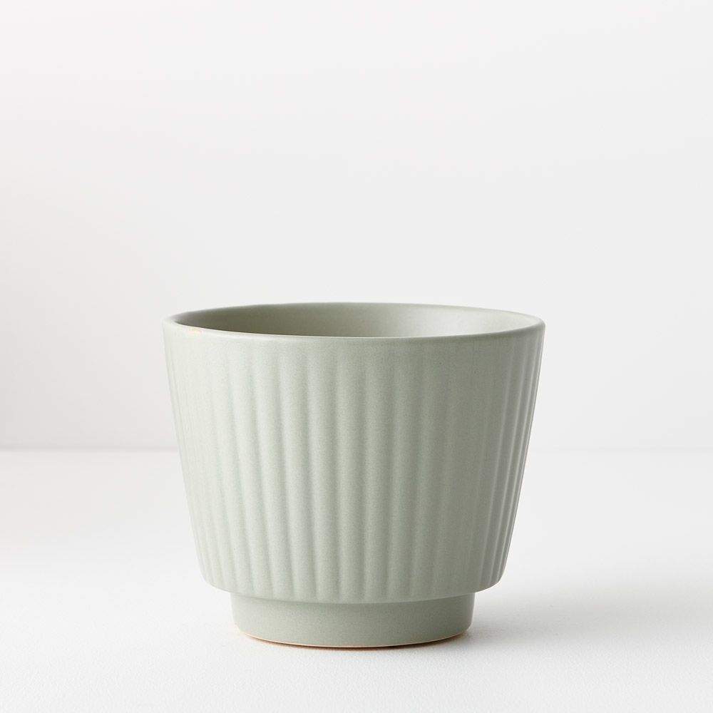 The Tuno Pot in 14cm boasts a clean sage colour and distinctive lined detail, adding texture and sophistication to any setting. Its minimalist yet elegant design makes it an excellent choice for showcasing plants or as a standalone decorative piece.