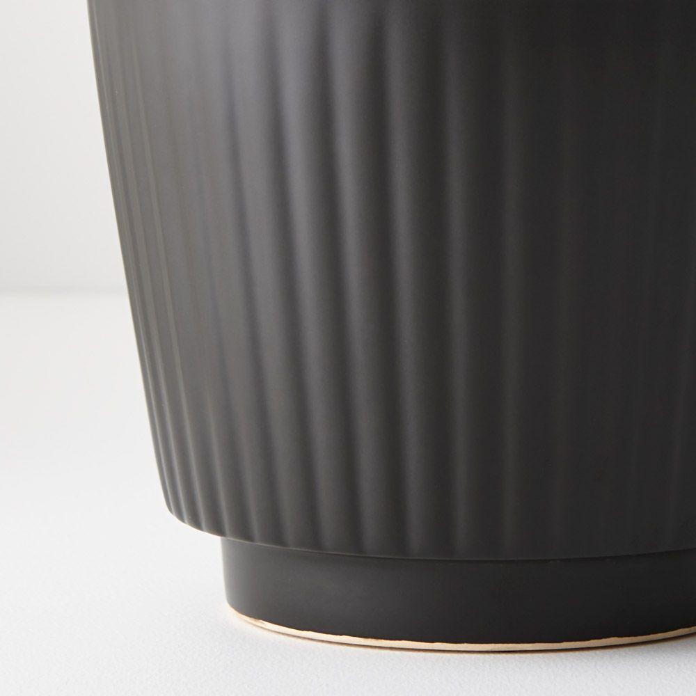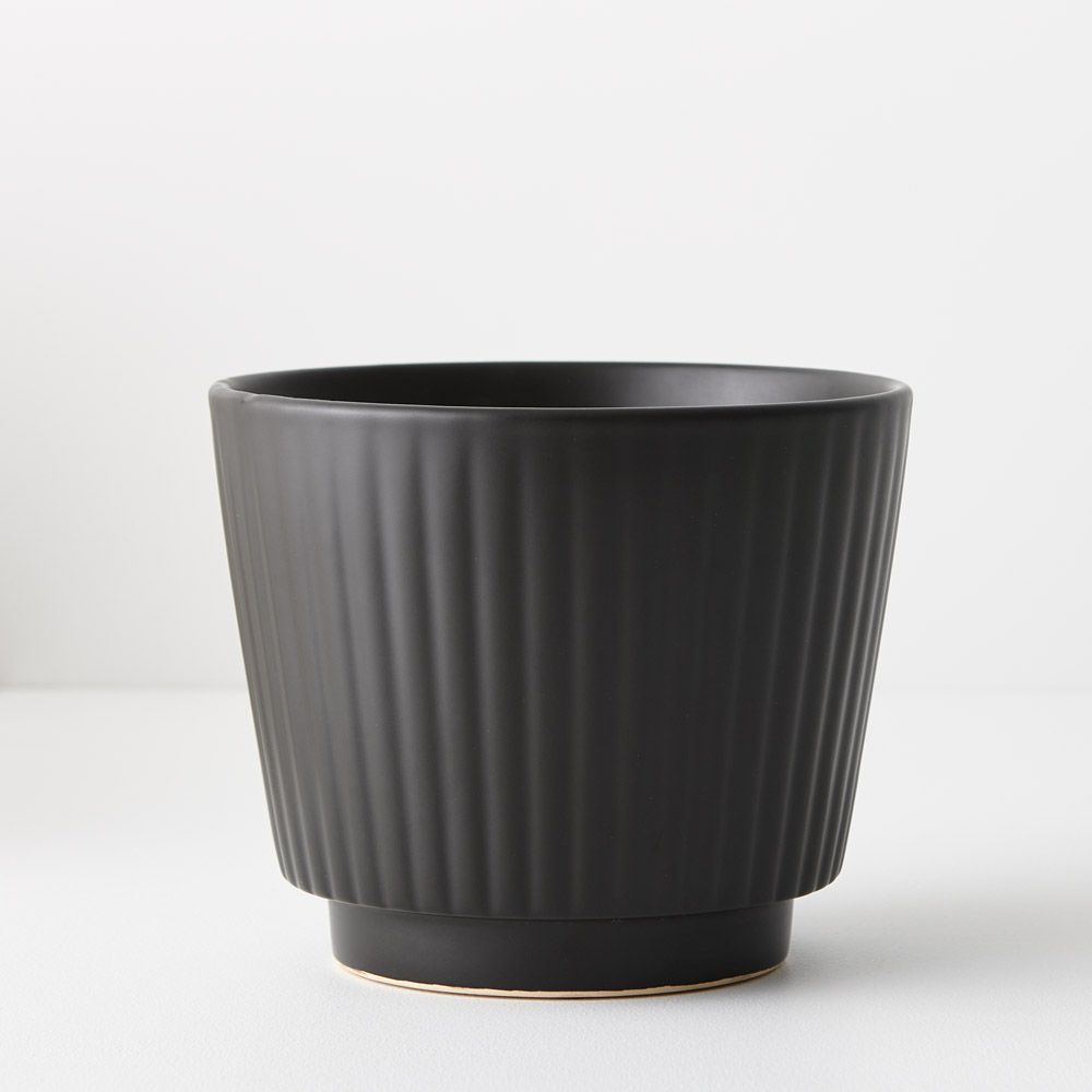 The Tuno Pot in 17cm boasts a clean black colour and distinctive lined detail, adding texture and sophistication to any setting. Its minimalist yet elegant design makes it an excellent choice for showcasing plants or as a standalone decorative piece.