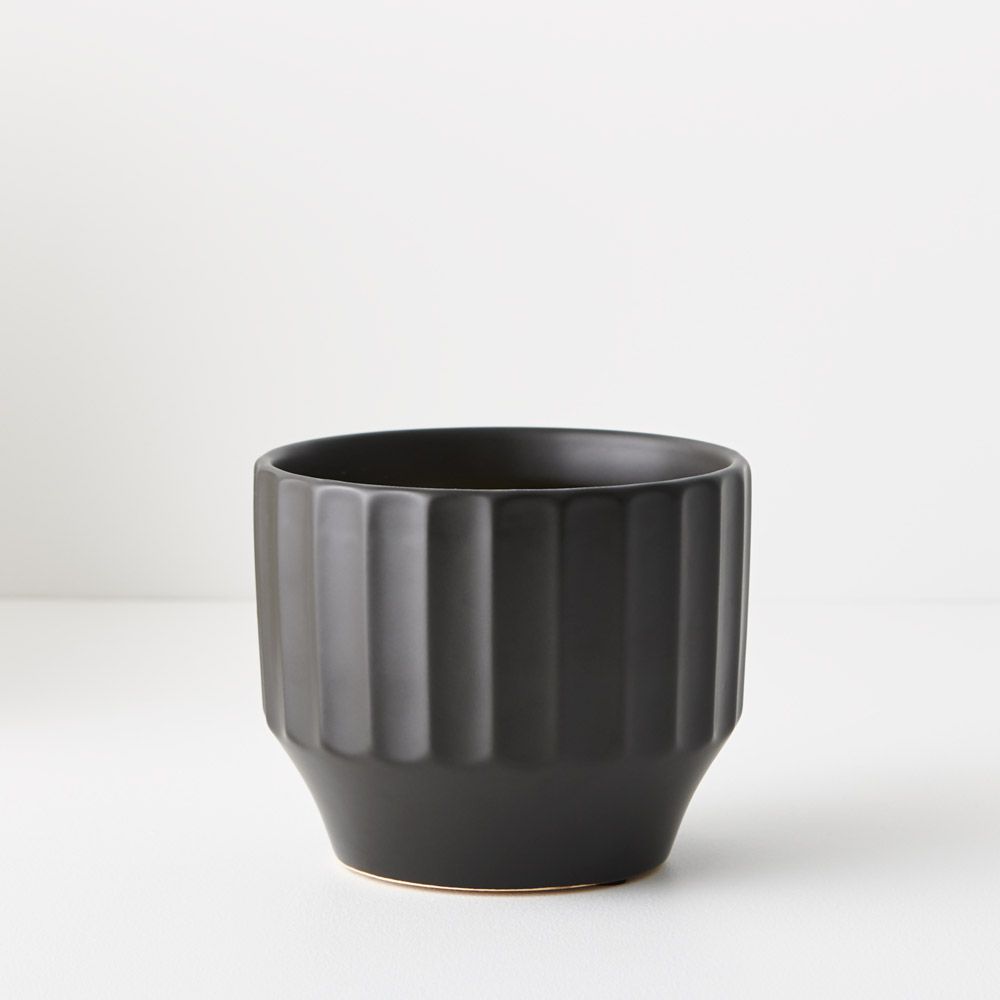 The Capra Pot in black, the smallest among its three sizes, features a narrowing base that adds a touch of elegance to its design. Its compact yet stylish structure makes it perfect for housing petite plants or adding subtle charm to any space.
