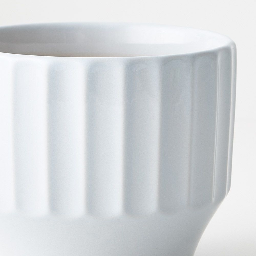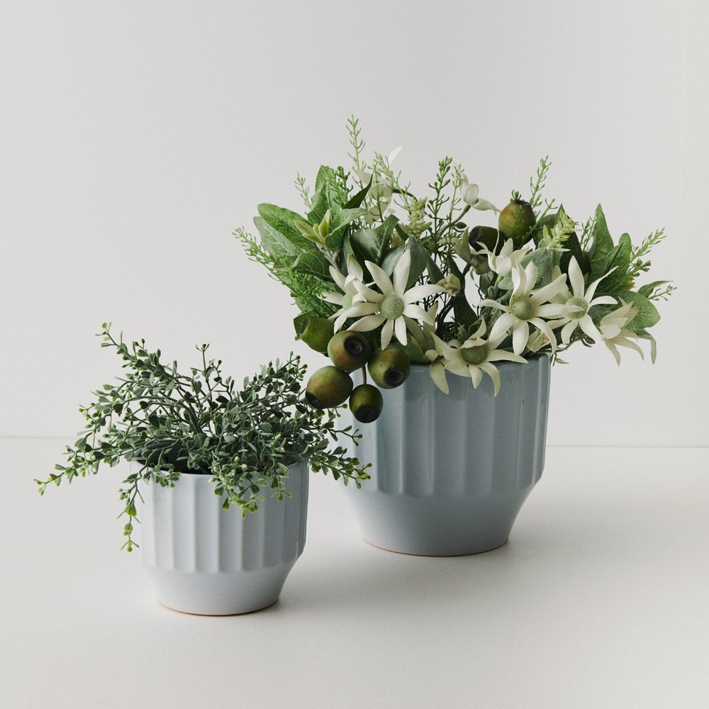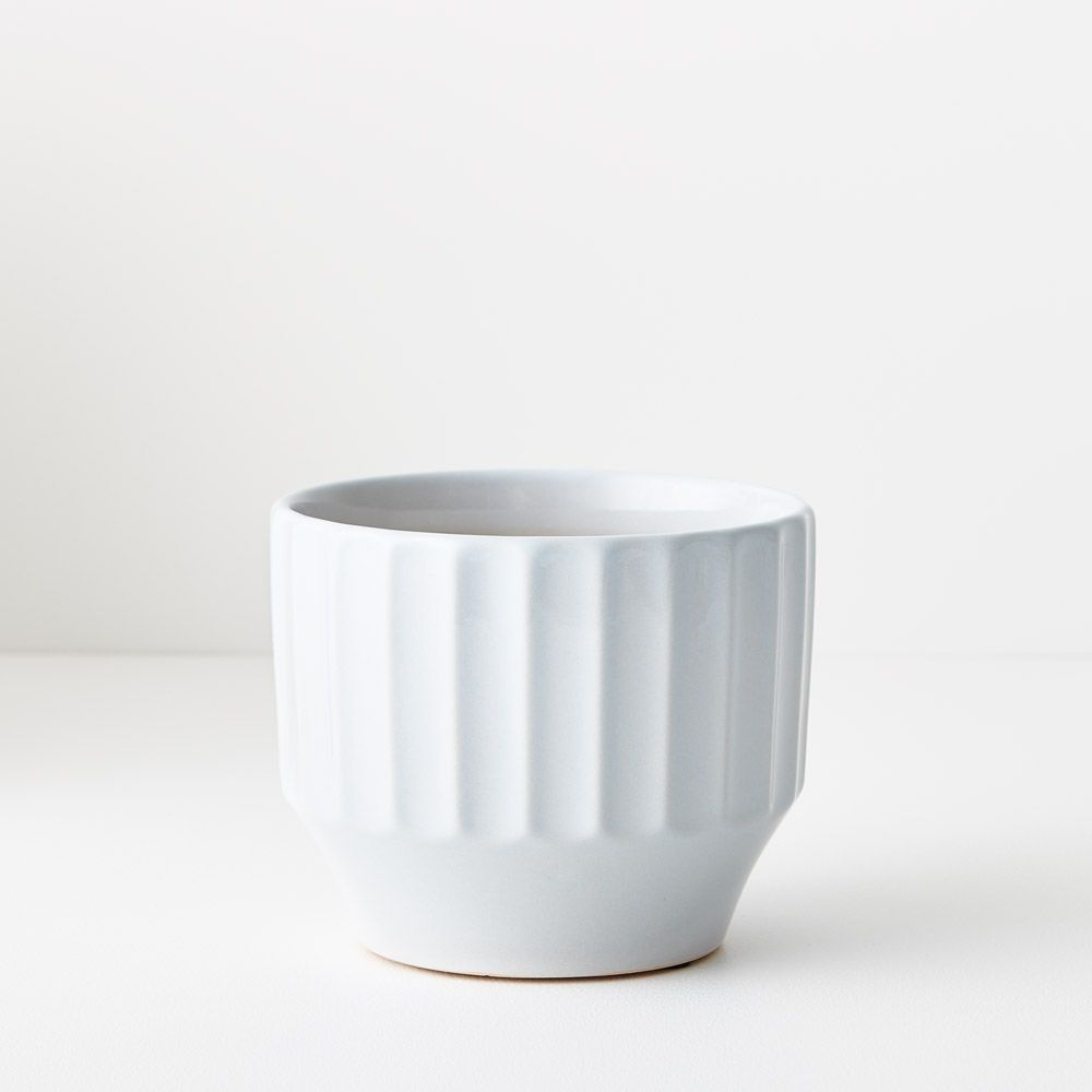 The Capra Pot in sky, the smallest among its three sizes, features a narrowing base that adds a touch of elegance to its design. Its compact yet stylish structure makes it perfect for housing petite plants or adding subtle charm to any space.