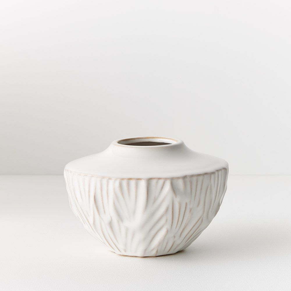 The Bryna Vase features a distinctive design with a curved base and a flatter top, complemented by a small opening. Standing at a modest 10cmh, it's perfect for minimalist arrangements or as a decorative accent, offering a touch of contemporary sophistication to any space.