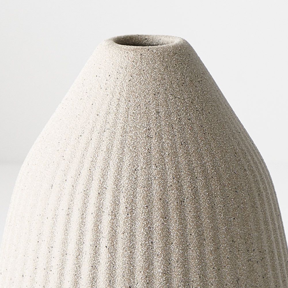 The cone-shaped Pilu speckled vase offers a distinctive silhouette, perfect for single stems or standalone display. Its speckled finish adds rustic charm, making it a versatile and eye-catching accent piece, effortlessly enhancing any space with its unique allure. Note: These decorative vases do not come with a guarantee they will hold water.