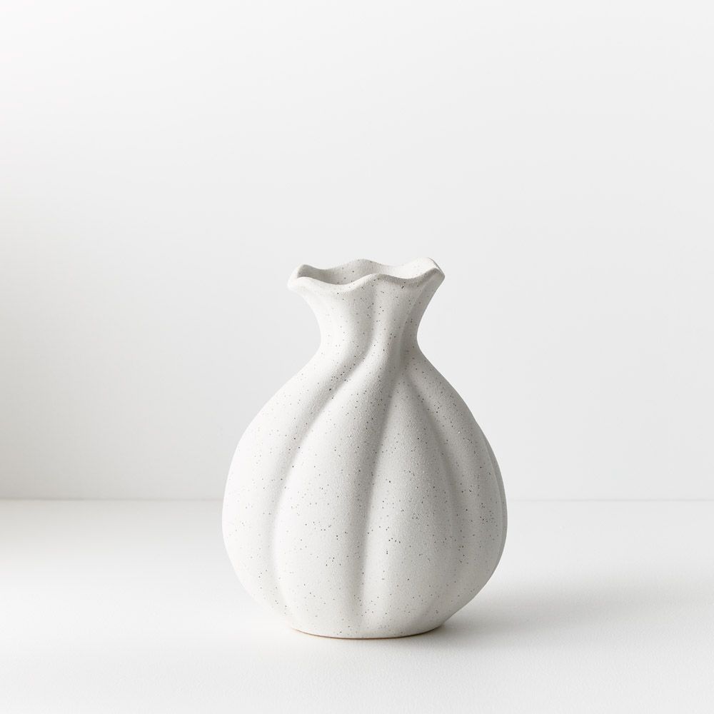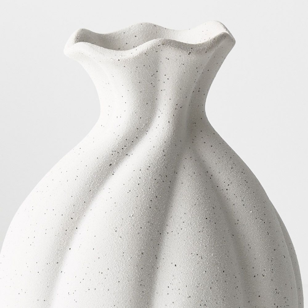 The Hana Vase in White showcases a captivating, twisted finish complemented by a charming, speckled look. Its unique design adds an intriguing dimension to any space, making it a standout centrepiece or decorative accent. With its distinctive aesthetic, it infuses interiors with a touch of contemporary elegance and artistic flair. Note: These decorative vases do not come with a guarantee they will hold water.