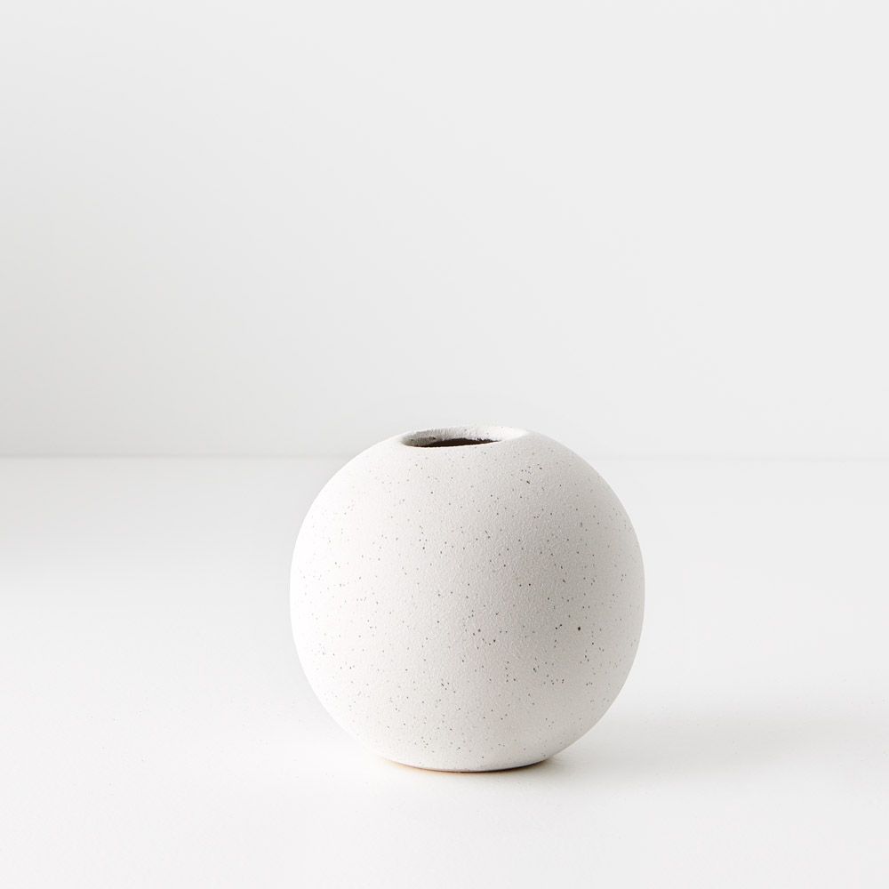 Introducing the very delicate Pilu , our exquisite round pot designed to host a small single stem or serve as a standalone decorative piece. With its sleek white and textured surface, Pilu exudes contemporary elegance. Its small opening is perfect for arranging delicate stems, adding a touch of sophistication to any space. Note: These decorative vases do not come with a guarantee they will hold water.