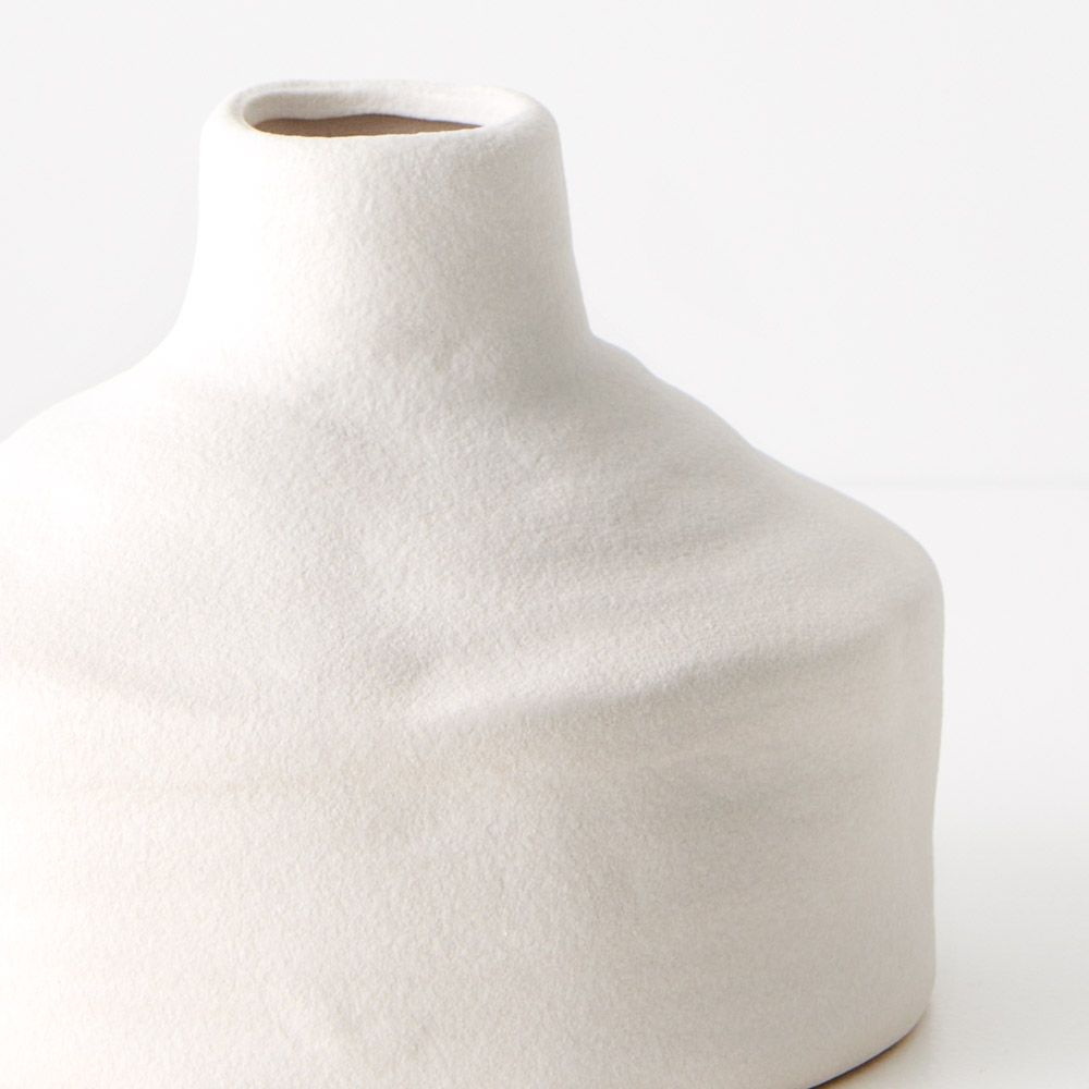 The Ingrida vase, a charmingly imperfect handmade piece, boasts a matte finish that accentuates its artisanal charm. Ideal for small flowers, its unique character shines whether solo or adorned, adding a touch of organic elegance to any space.