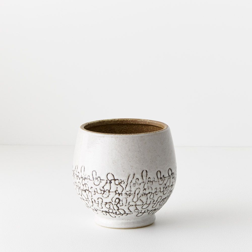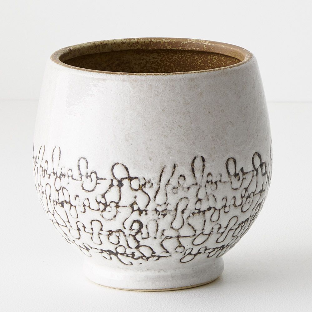 The Havana Pot, available in white/brown, features whimsical scribble line details encircling its base, adding character to its design. Available in multiple sizes, it offers versatility and charm, making it an enchanting choice for various plants and decor arrangements.