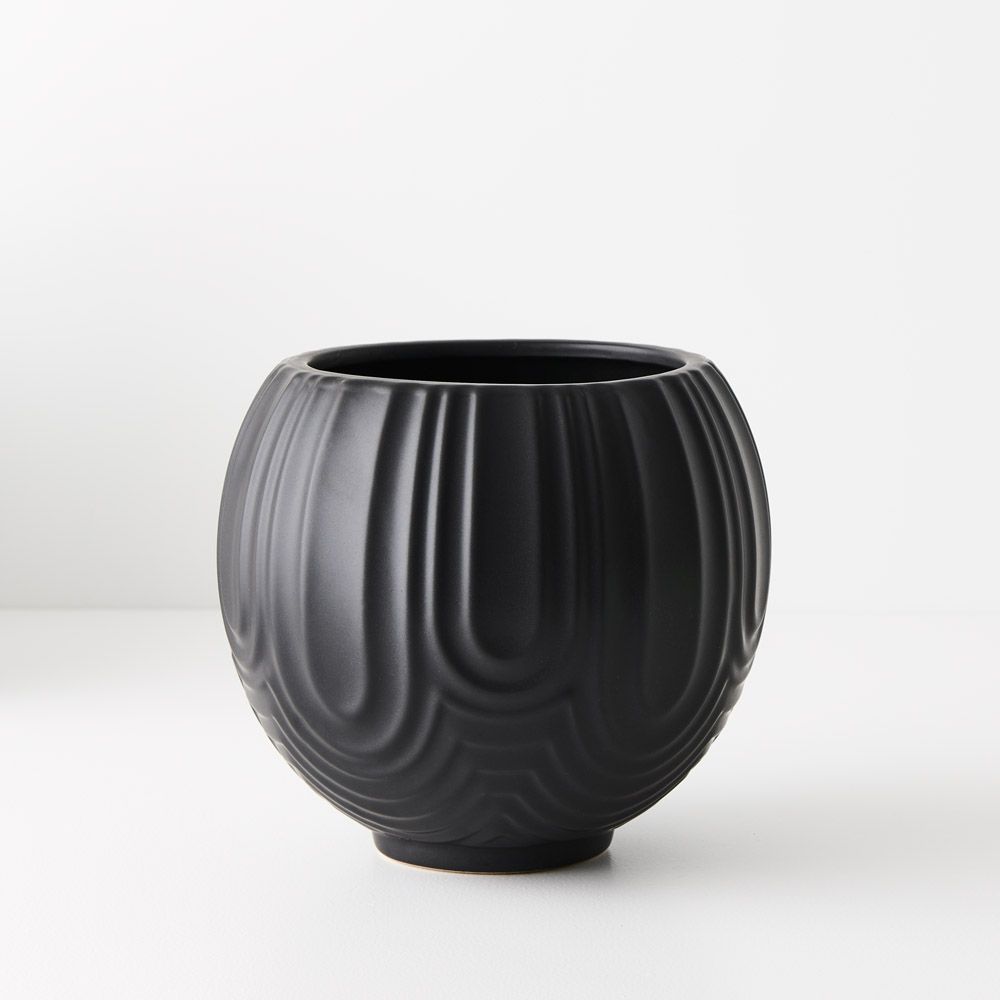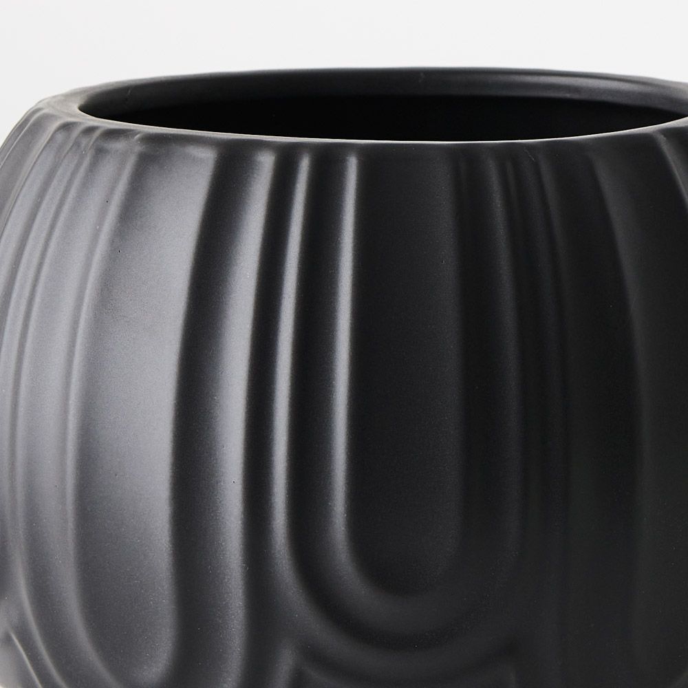 The Laurela Pot in Black features a captivating geometric pattern, adding a modern touch to any space. Its sleek design and intricate detailing make it a stylish choice for housing plants, flowers or as a standalone decor piece, effortlessly enhancing the ambiance with contemporary flair.