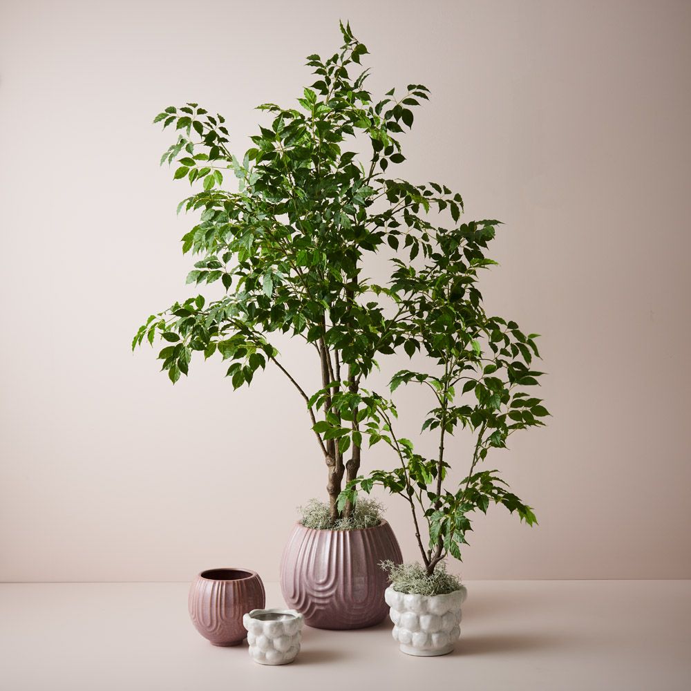 The Laurela Pot in Pink features a captivating geometric pattern, adding a modern touch to any space. Its sleek design and intricate detailing make it a stylish choice for housing plants, flowers or as a standalone decor piece, effortlessly enhancing the ambiance with contemporary flair.