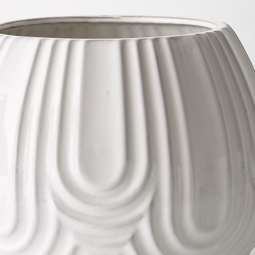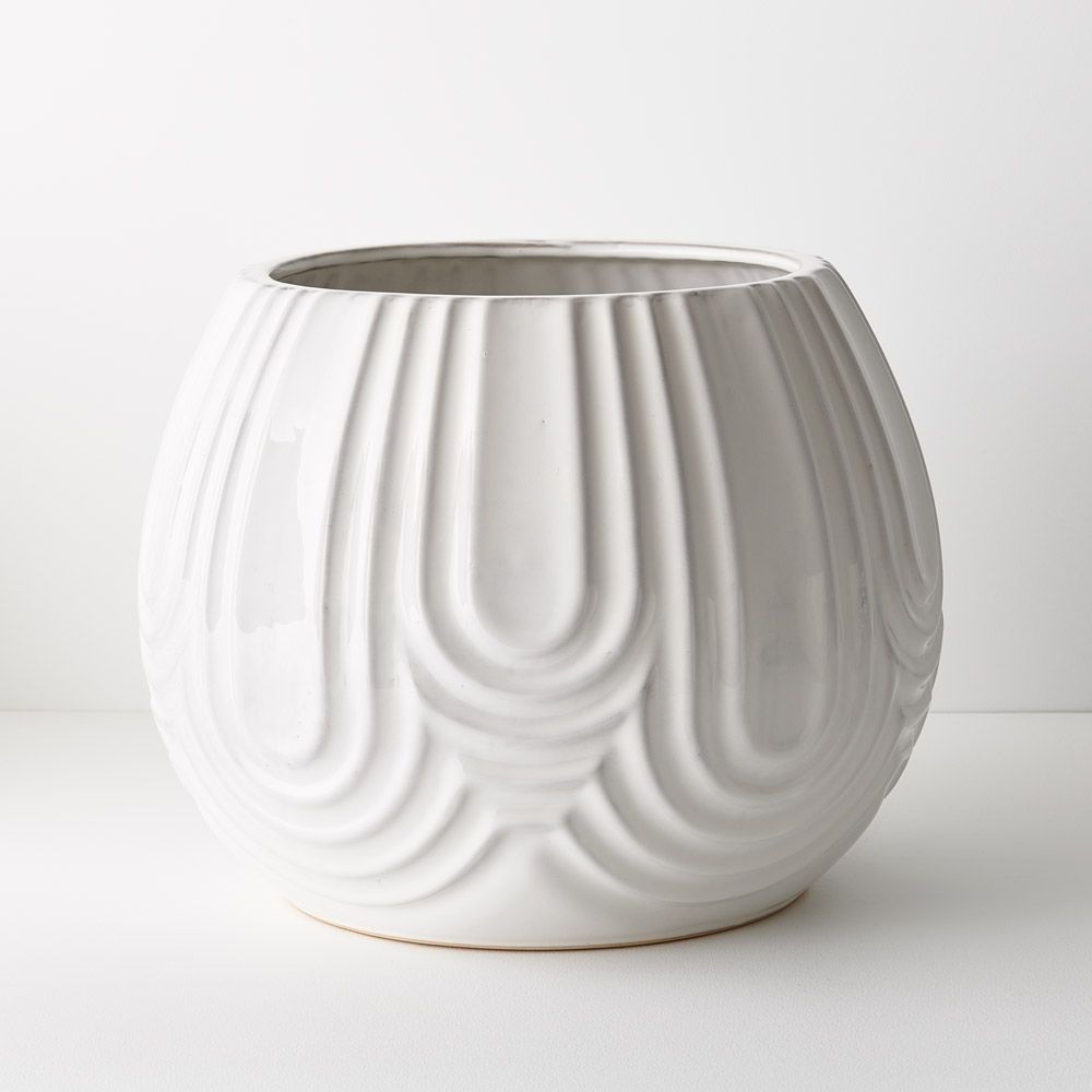 The Laurela Pot in White features a captivating geometric pattern, adding a modern touch to any space. Its sleek design and intricate detailing make it a stylish choice for housing plants, flowers or as a standalone decor piece, effortlessly enhancing the ambiance with contemporary flair. Make a statement with this large pot sitting at 30cmh.